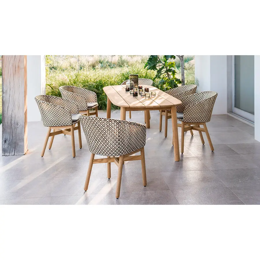 La colección MBRACE de Sebastian Herkner lleva un enfoque alegre y original a los muebles de piscina, combinando por primera vez asientos de fibra DEDON y bases de teca maciza. El resultado es una colección llamativa y atractiva al instante para la zona lounging, comedor y mucho más.