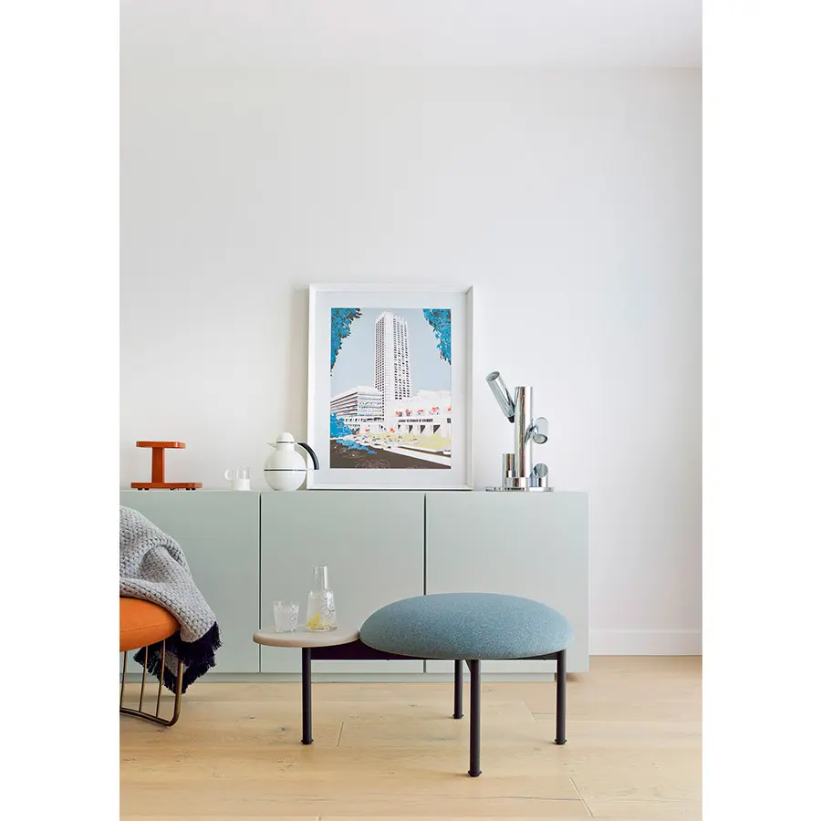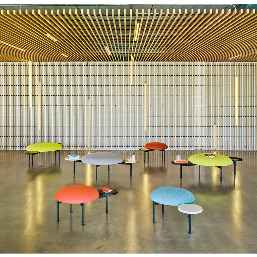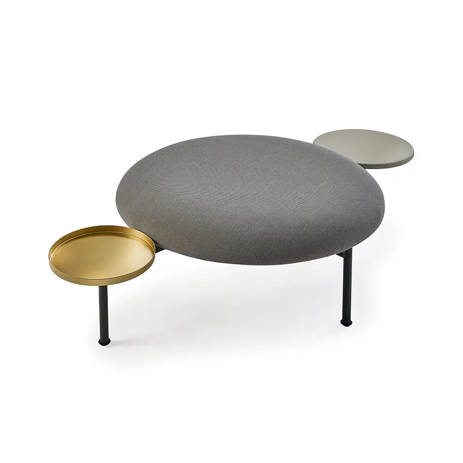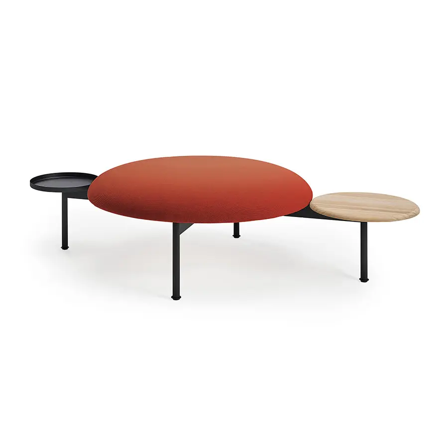 Meeting Point es un sistema de pufs con mesas y representa uno de los cuatro productos independientes y singulares diseñados por el maestro italiano Luca Nichetto. Así, el círculo es el elemento formal dominante en toda la familia. A los redondeados asientos tapizados de 60 y 90 centímetros de diámetro, le acompañan redondas mesitas de madera o metal de diferentes medidas y acabados.