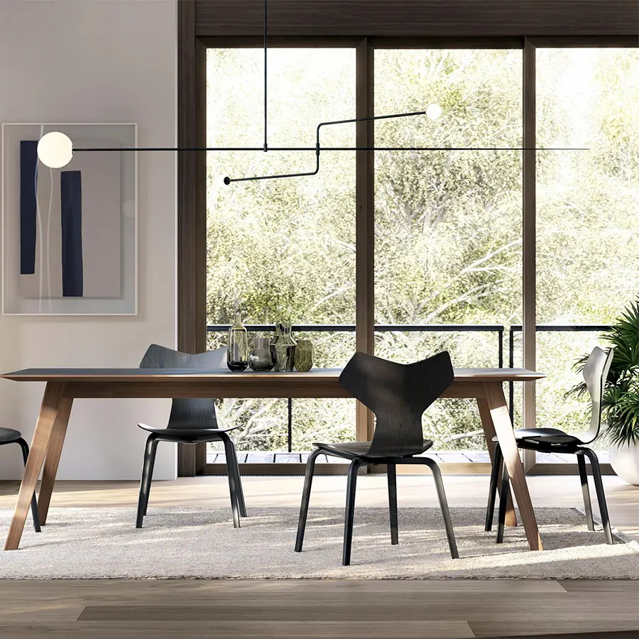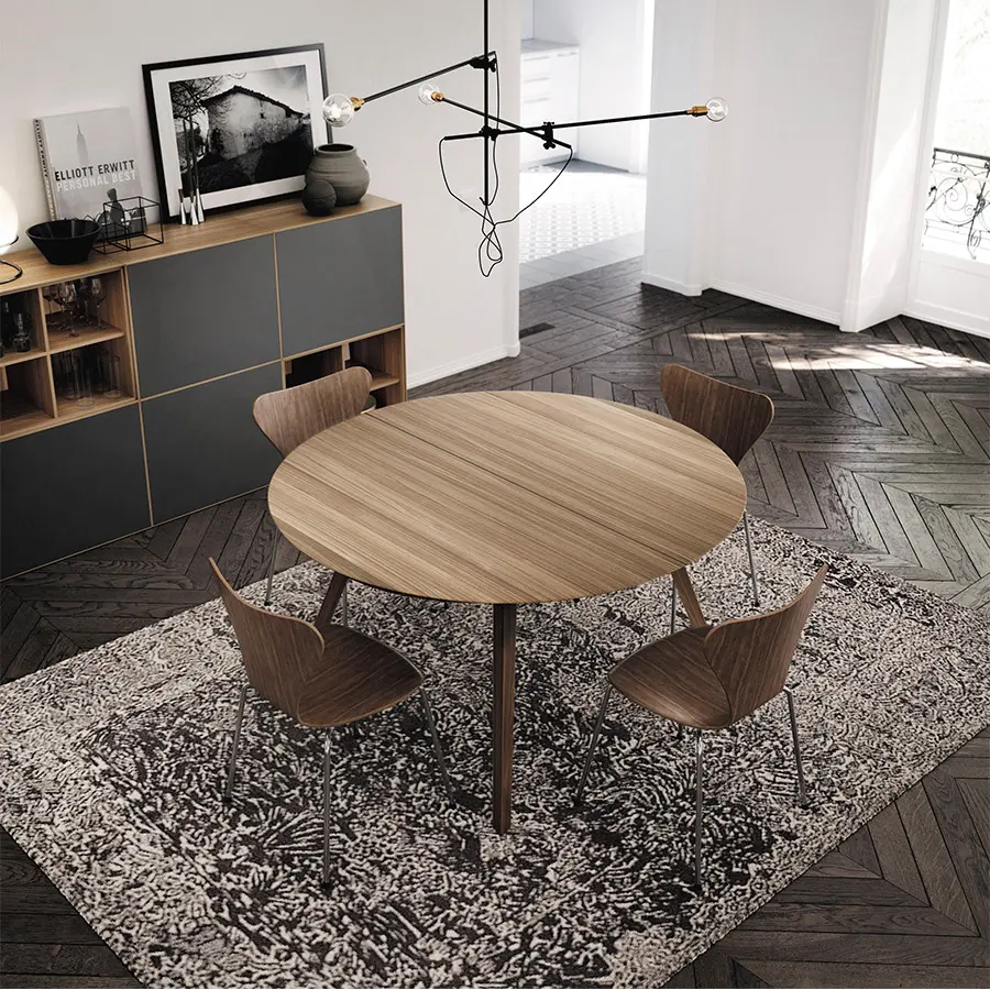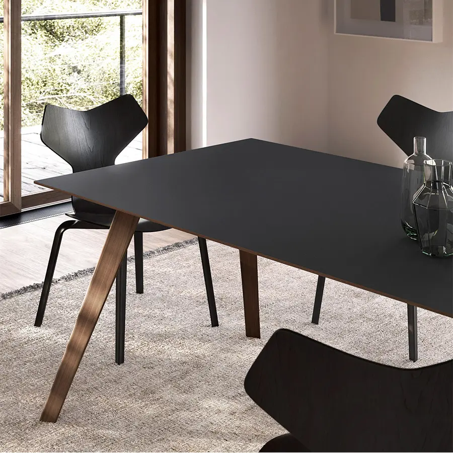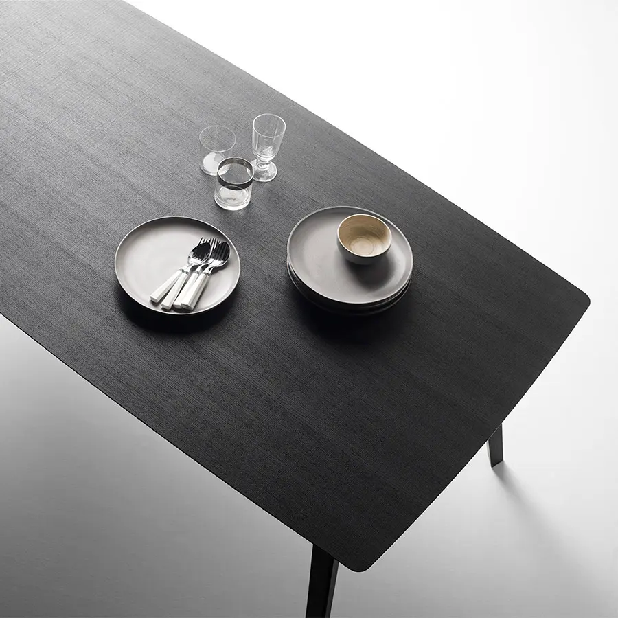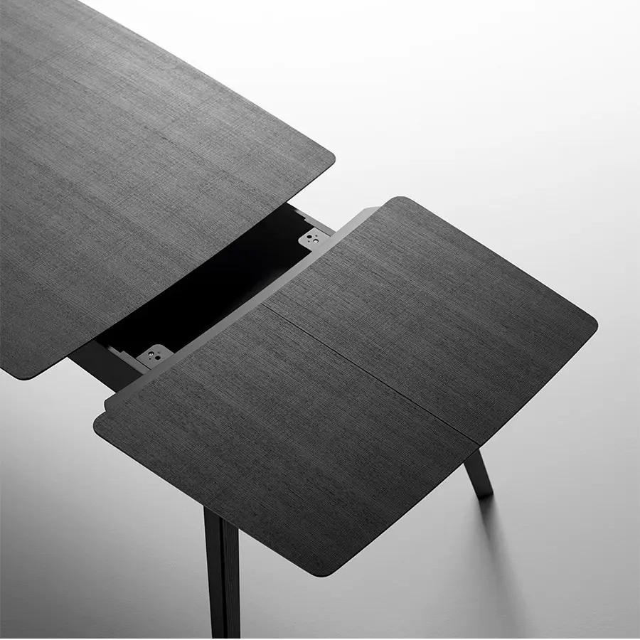 Las patas y bastidores pueden fabricarse en metal (blanco/negro) o madera (nogal/roble; en esta versión la mesa además puede ser extensible). Las encimeras de la mesa Aise pueden ser lacadas, de madera o fenix. Las múltiples combinaciones de formas y materiales permiten crear una mesa para cada tipo de ambiente, para cada tipo de persona. Tu eliges.