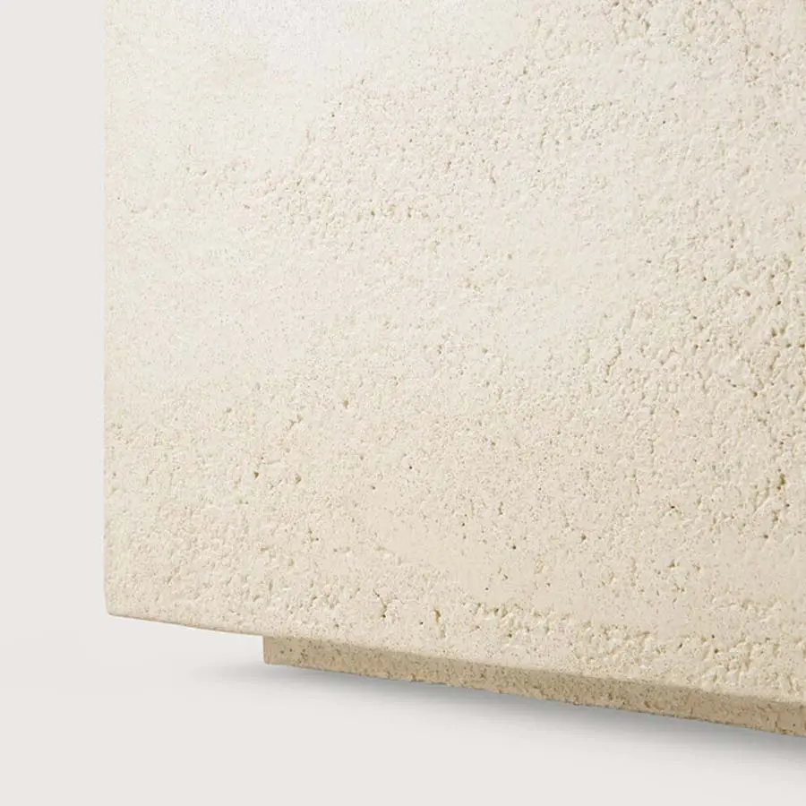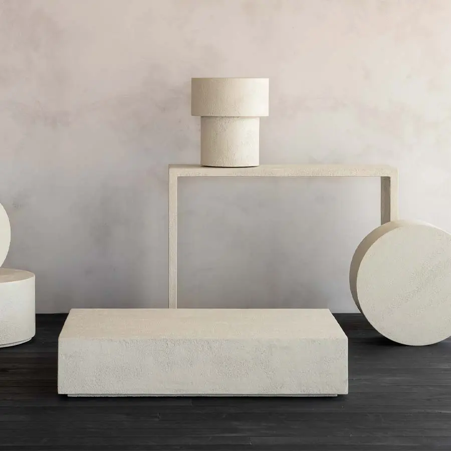 Mesa de centro fabricada con microcemento, una mezcla de áridos finos y minerales combinados para formar un acabado único.