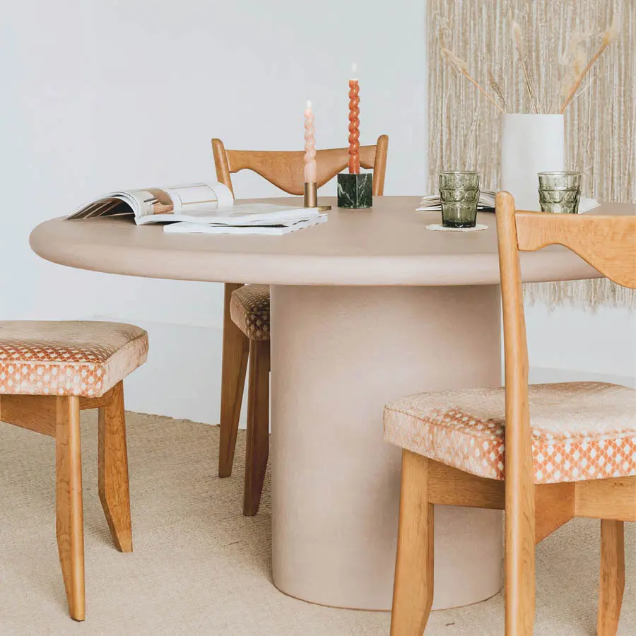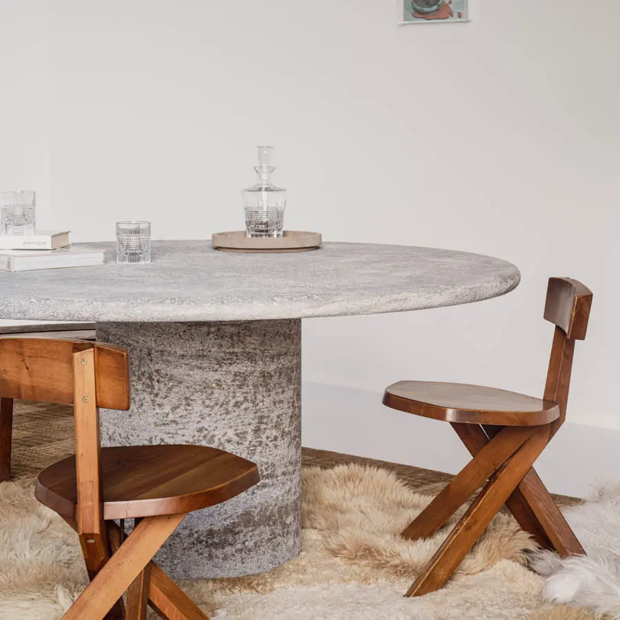 La mesa Out of Line se fabrica a mano por encargo en Bélgica. Combina elegancia y solidez, y destaca por su estética única y contemporánea. El uso del hormigón como material principal confiere a la mesa una sensación de resistencia y durabilidad. El acabado Sand que aparece en la foto, con su superficie rugosa y táctil, añade un toque de originalidad a la mesa. Esta textura le da un aspecto natural y artesanal, creando un fascinante contraste con su forma redonda y moderna. La mesa Out of Line también destaca por sus líneas limpias y minimalistas; la forma irregular, combinada con el uso del hormigón, confiere a la mesa un aspecto contemporáneo y sofisticado.