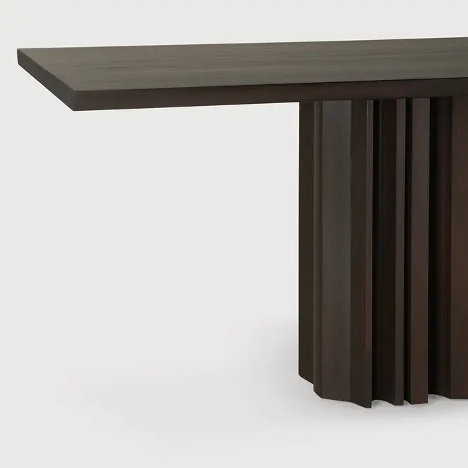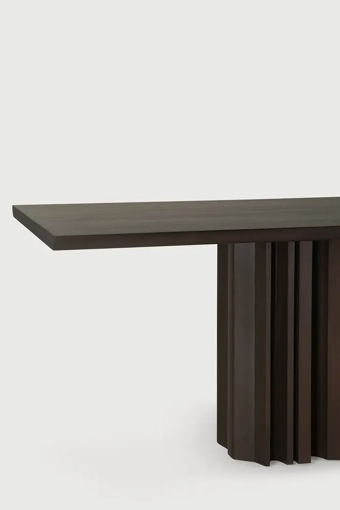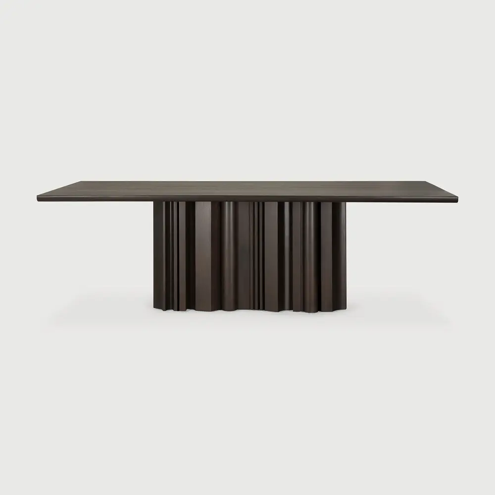 Inspirada en el rítmico flujo de la repetición y la variabilidad, la mesa de comedor Sequence aporta una sensación de movimiento a su espacio. Sus elementos de madera maciza establecen una base escultórica donde las formas alternadas consiguen un juego equilibrado de presencia y apertura. La superficie lisa de la mesa brinda un contraste discreto y consolida la simplicidad del diseño. Materiales: Caoba teñida de marrón oscuro