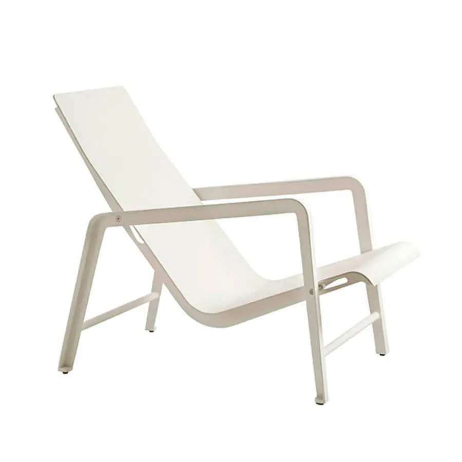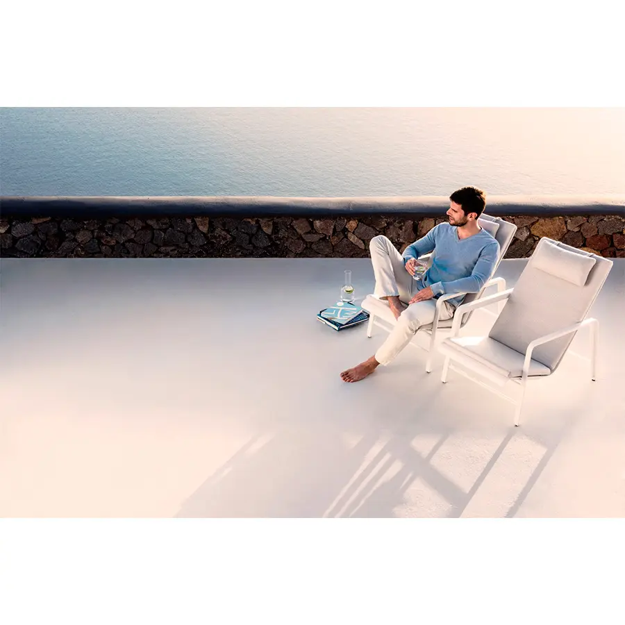 Minimalismo con un toque juguetón. La colección Mirthe reúne todos los elementos de un típico mueble de exterior de Tribù: líneas puras y limpias que no pasan de moda, con una imagen fresca y moderna. El diseñador eligió conscientemente el aluminio: resistente, ligero, completamente reciclable, con poco mantenimiento e ideal para exteriores.