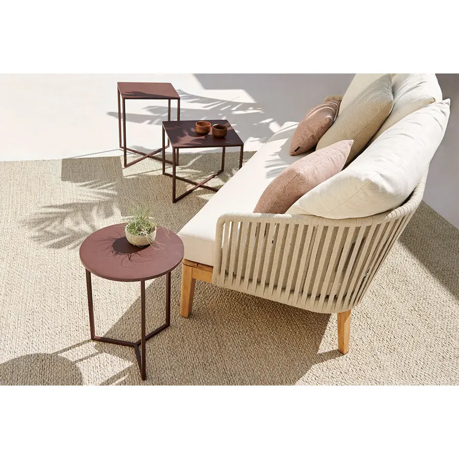 Los cojines se pueden quedar fuera incluso cuando llueve, ya que los rellenos transpirables están protegidos por una funda de polipropileno laminado resistente al agua.