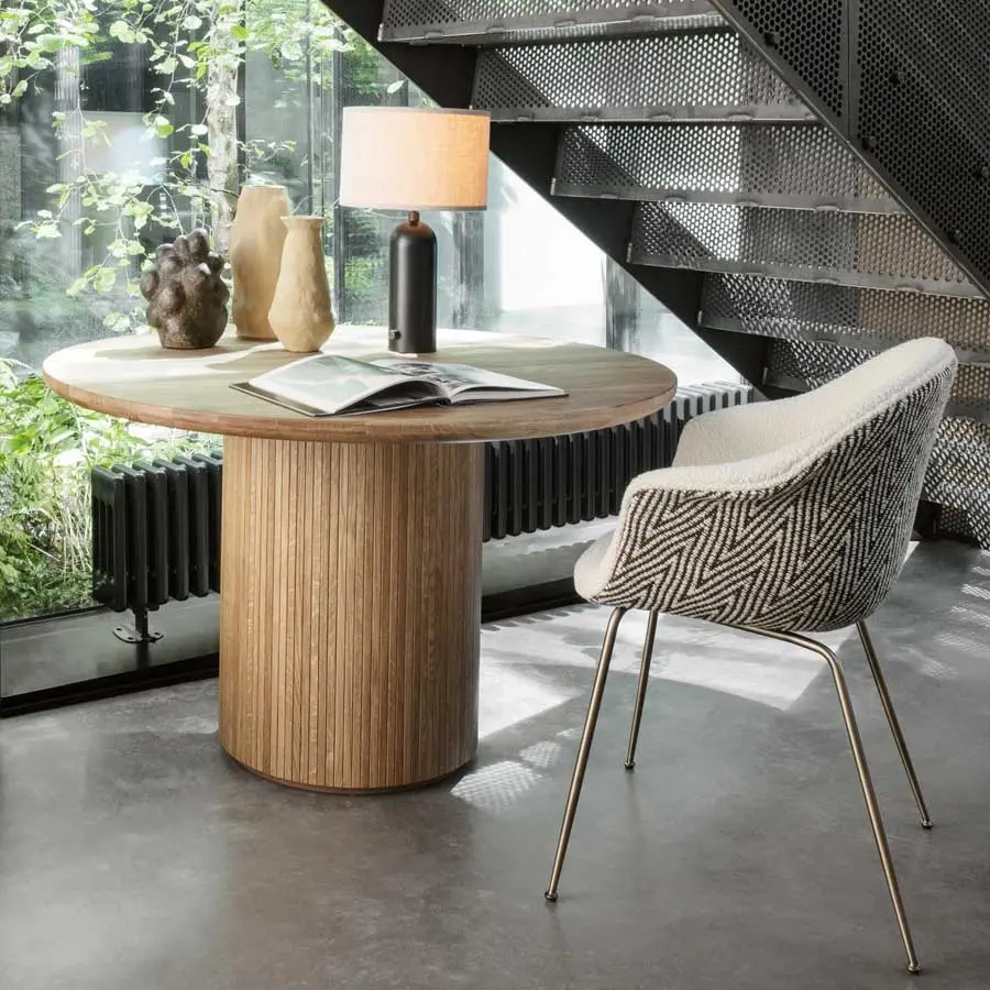 Contemporánea y cautivadora, la hermosa y robusta Mesa de Comedor Gubi Moon cuenta con una estética fascinante inspirada en la Luna. Parte de la icónica Colección Moon, está cuidadosamente elaborada en roble teñido en marrón/negro y es extremadamente duradera, sirviendo tanto como una mesa práctica como una pieza artística y escultural en el centro. Perfecta para reunir a familiares y amigos, está disponible en dos tamaños y se encuentra idealmente ubicada en un comedor o en un espacio de planta abierta, complementando estilo y carácter en tu hogar.