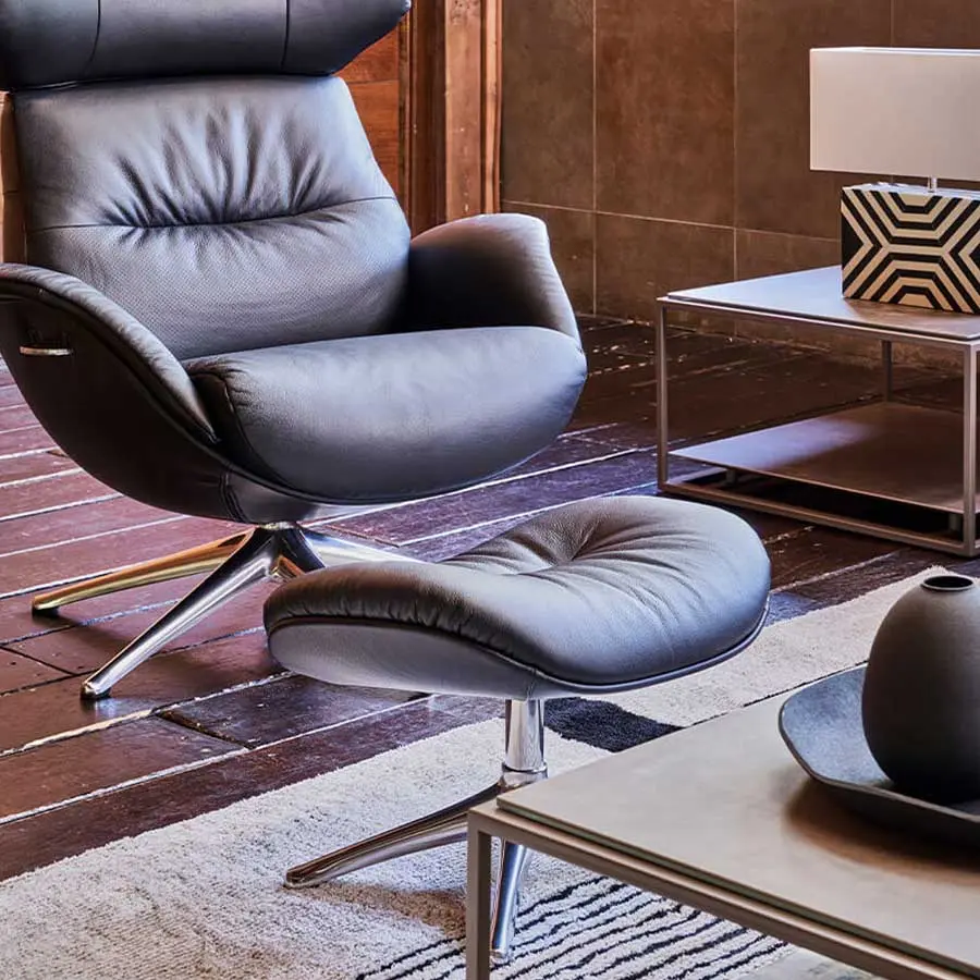 La butaca More está disponible en diferentes tapizados, piel de máxima calidad y patas en cromado o grafito. De esta forma podrás elegir justo el estilo que encaja en tu estudio o salón. Es una butaca súper cómoda que además es giratoria y reclinable, en la que podrás regular también su cabezal en altura y en amplitud su cabezal. El reposapiés es opcional.