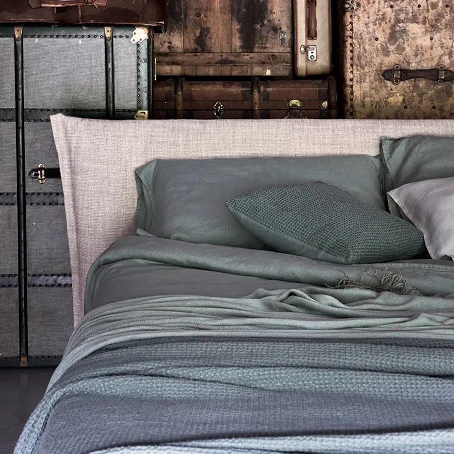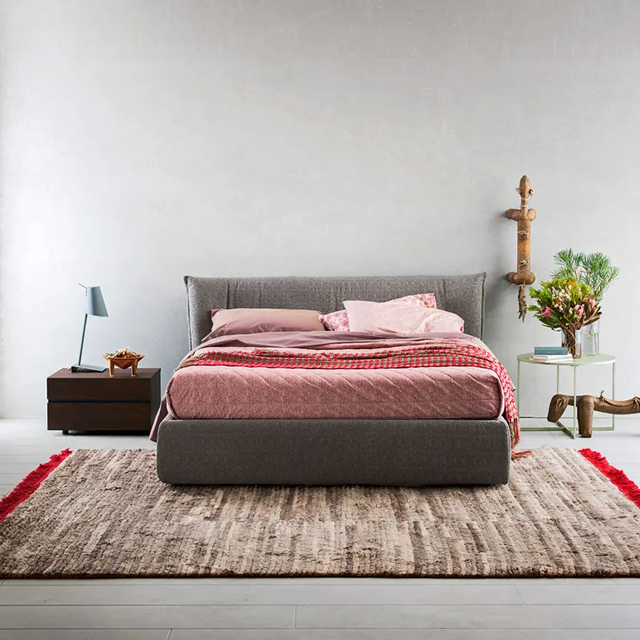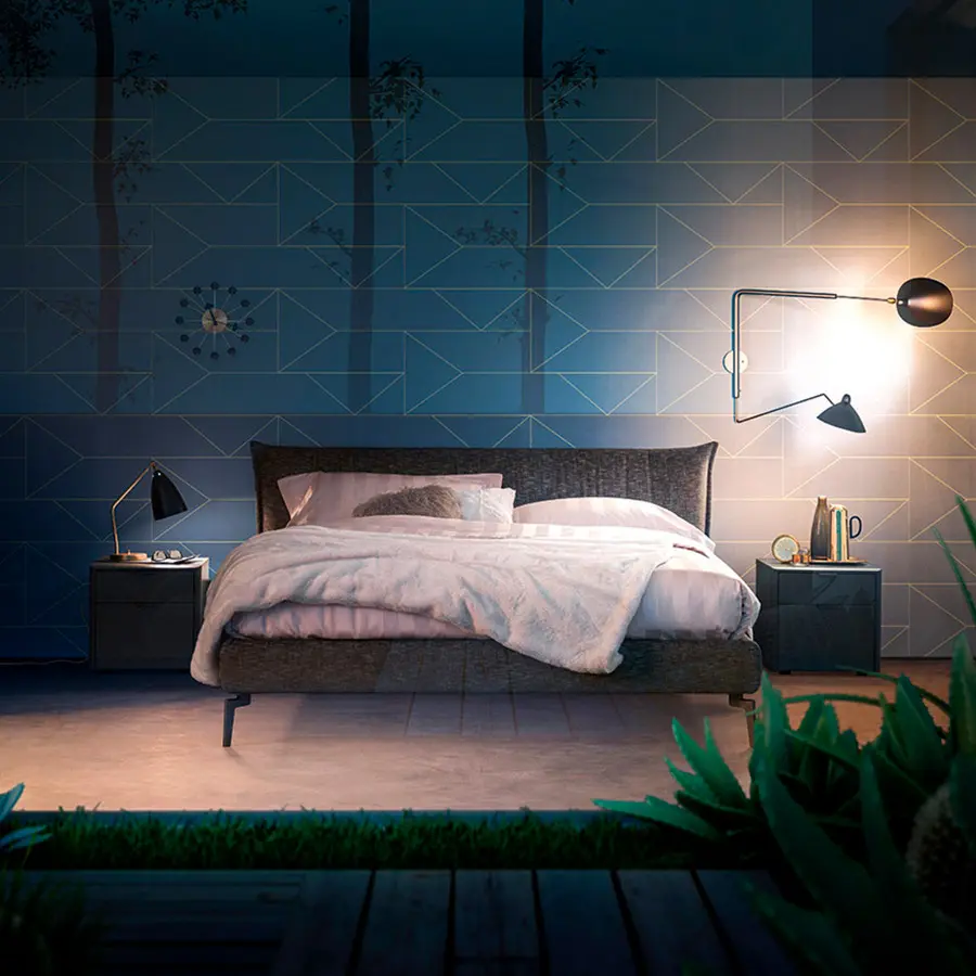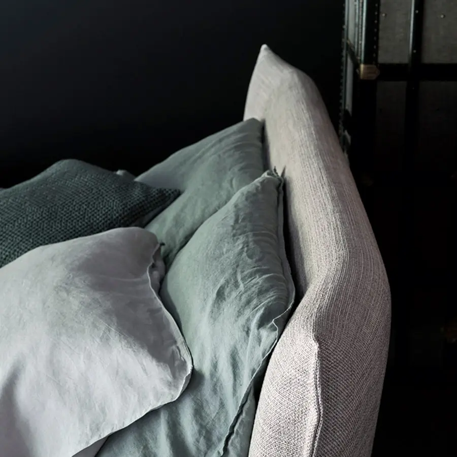 En esta cama, las secciones laterales de la cabecera, levemente inclinadas, dirigen la mirada hacia el mullido revestimiento de la parte central. Morrison permite escoger libremente entre canapé o plataforma con patas de metal. Disponible en una amplia selección de medidas, incluso con contenedor.