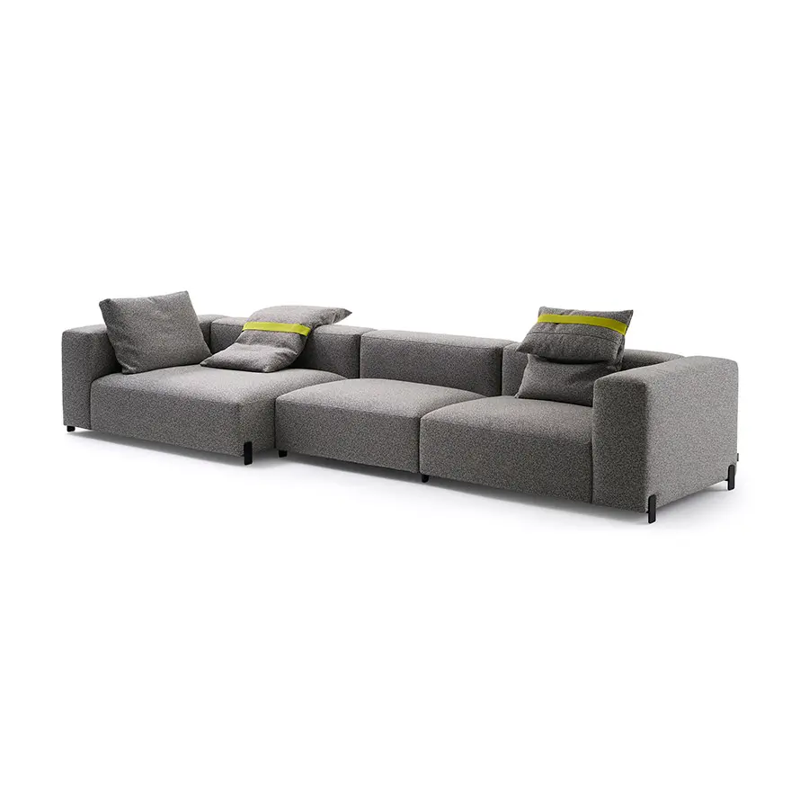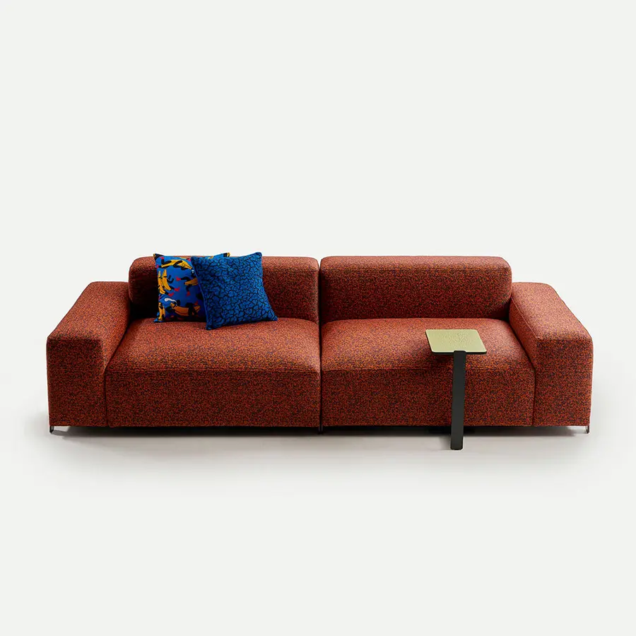 Su sentada, de esponjoso y mullido tacto, es su rasgo distintivo pues emula esa textura de diminutas burbujas tan característica del popular postre. Además, al igual que él desde fuera aparenta un compacto bloque que se desvanece tan pronto lo pruebas. Mousse es una invitación a dejarse llevar y atrapar, transformando la acción de sentarse en una experiencia de descanso y sosiego única. Sus almohadas accesorias ayudan a potenciar esta sensación.