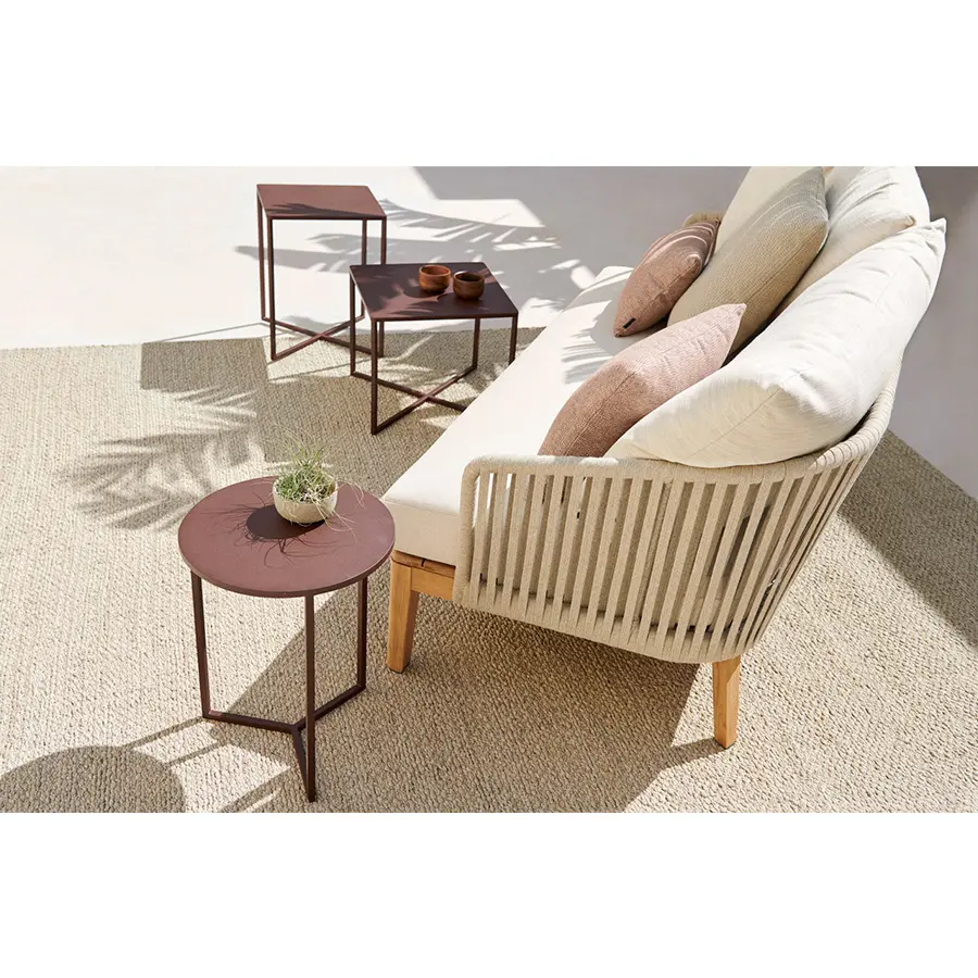 Estas mesas multiusos están disponibles en acabados en white, linen, burgundy y wengé. También se pueden escoger diferentes alturas y tamaños, por lo que las Natal Alu X-mesasservirán de complemento para cualquier decoración de exteriores.