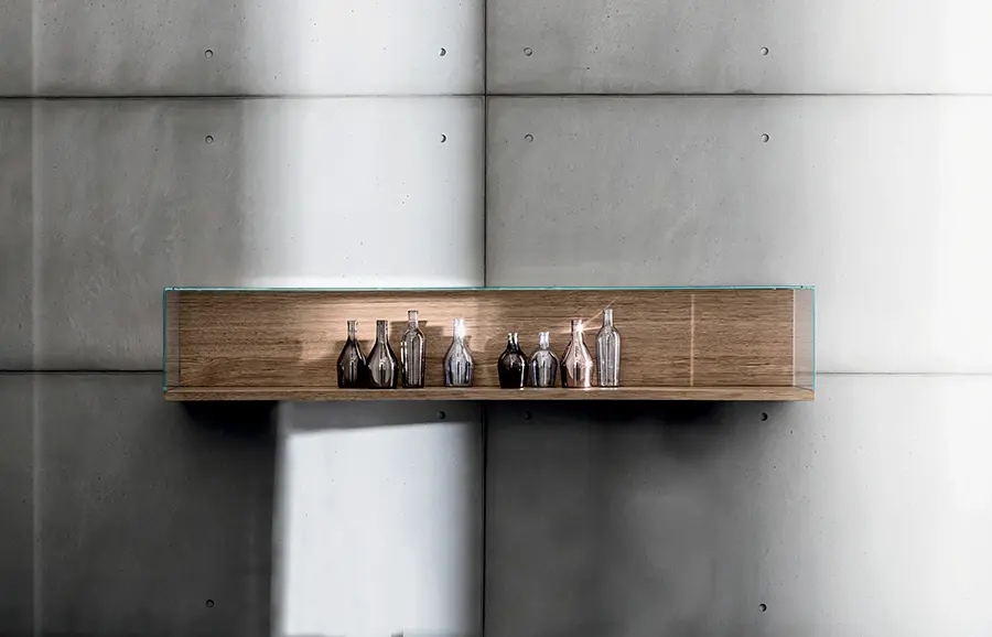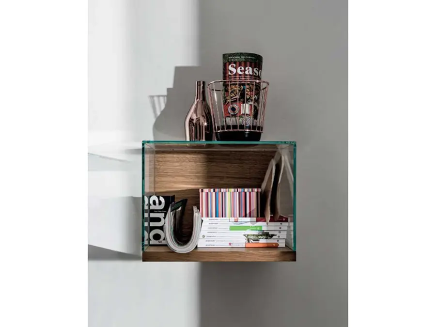 Caja con estructura de madera chapada en roble 30 mm. th., acabado natural o wengé.