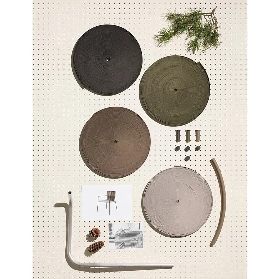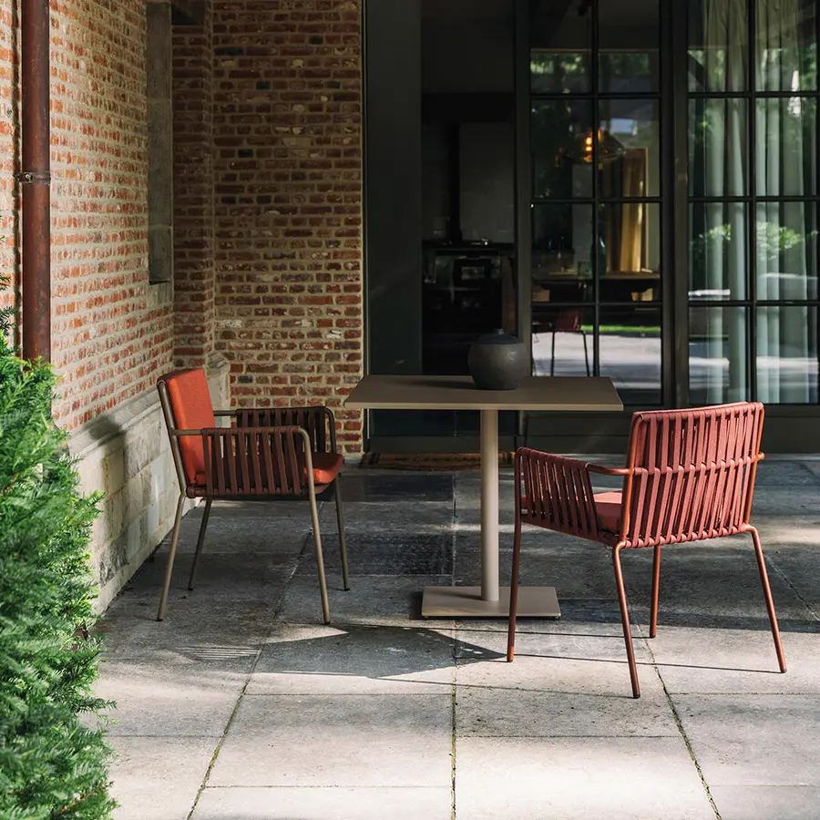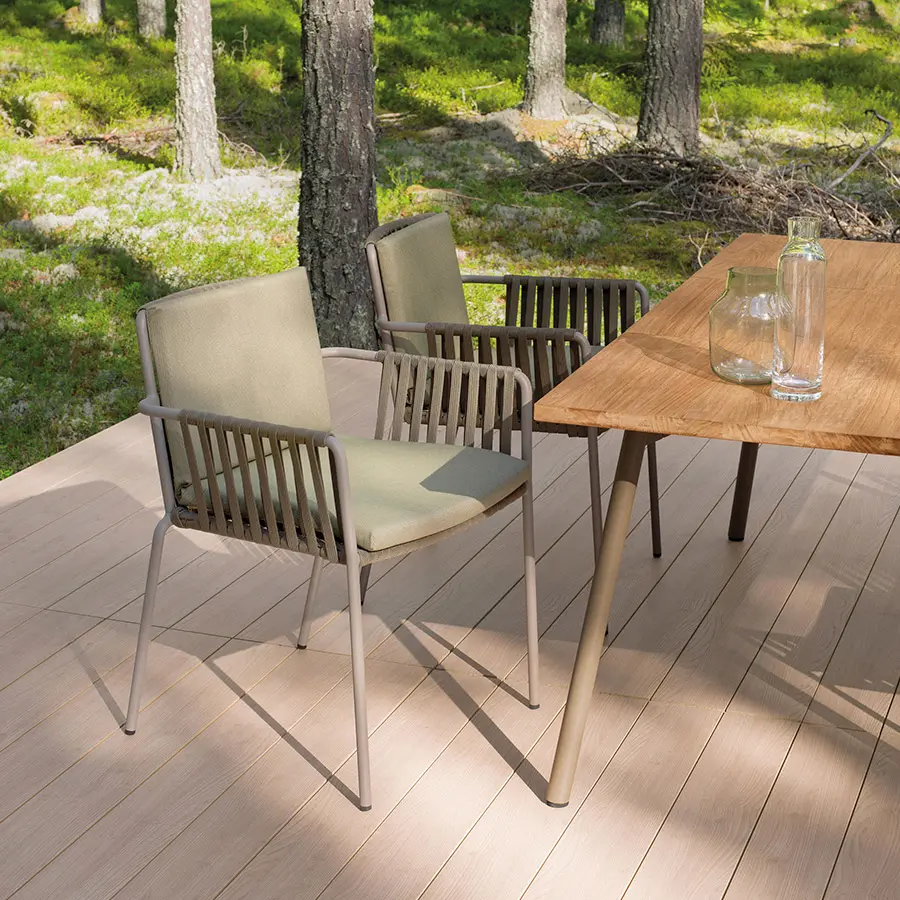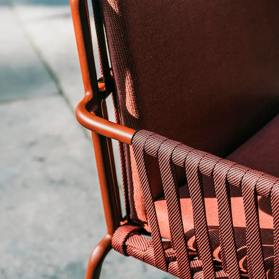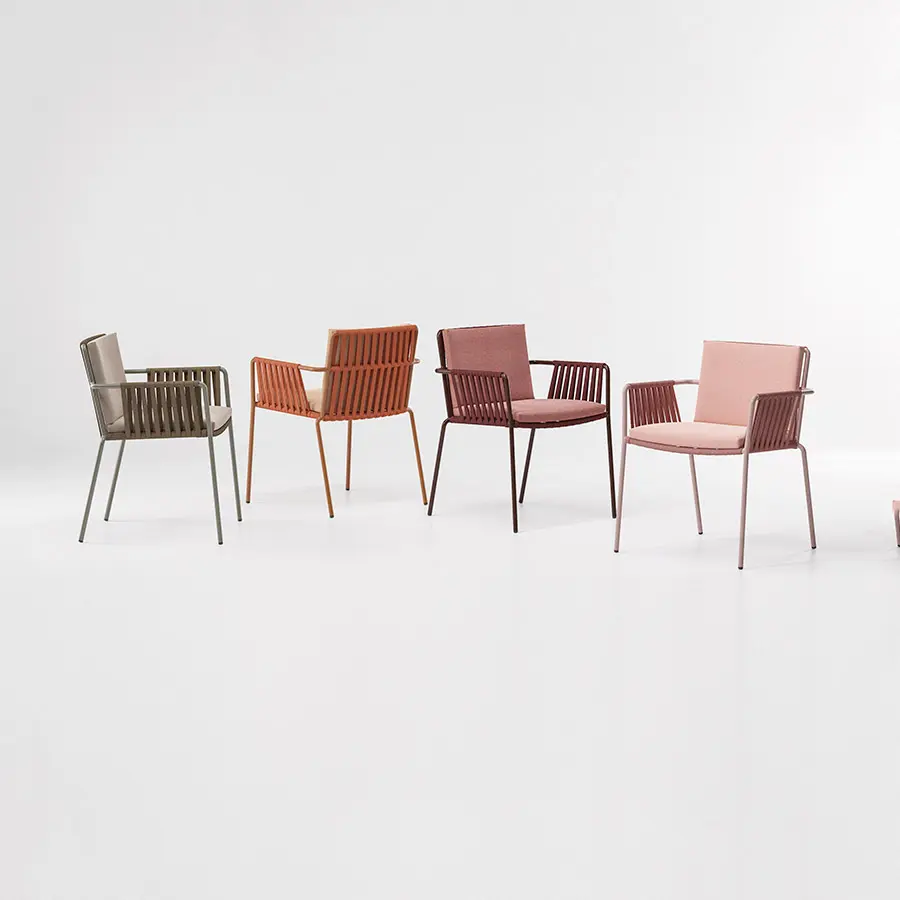 La silla Net de Kettal mantiene una estructura clásica, elegante y de formas suaves que confieren un semblante tranquilo y atractivo. Formalmente está compuesto por una trama de cuerdas y tubos de aluminio que proporcionan una estética artesanal y ligera.
