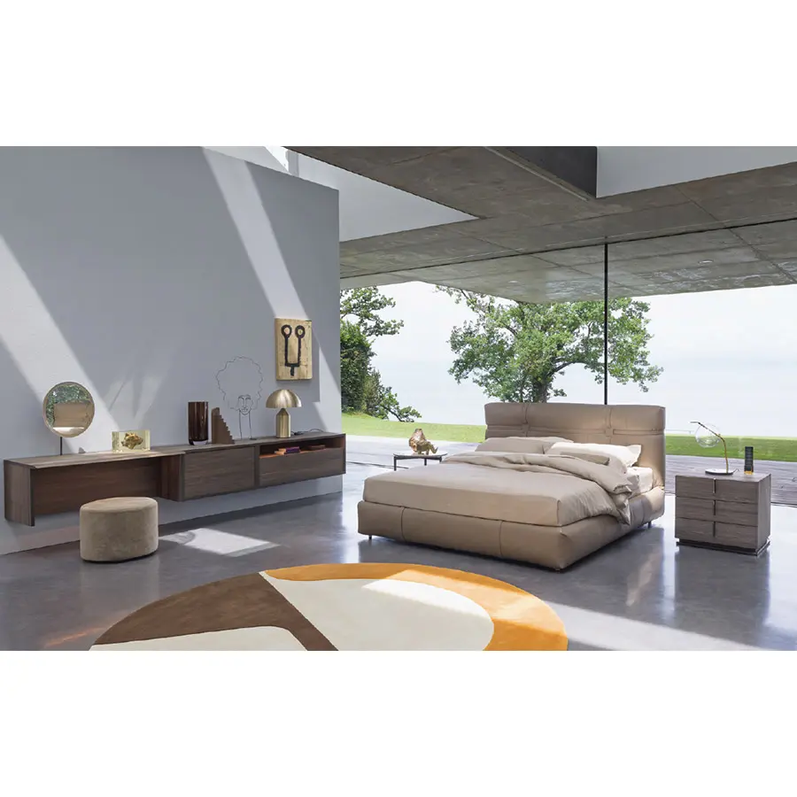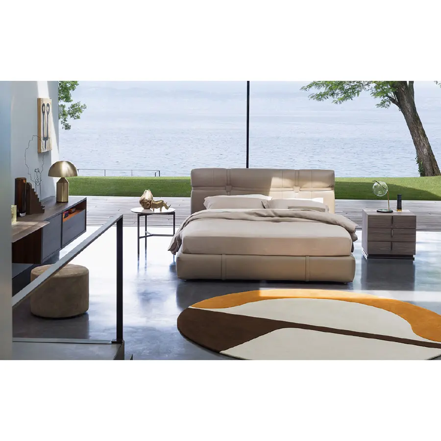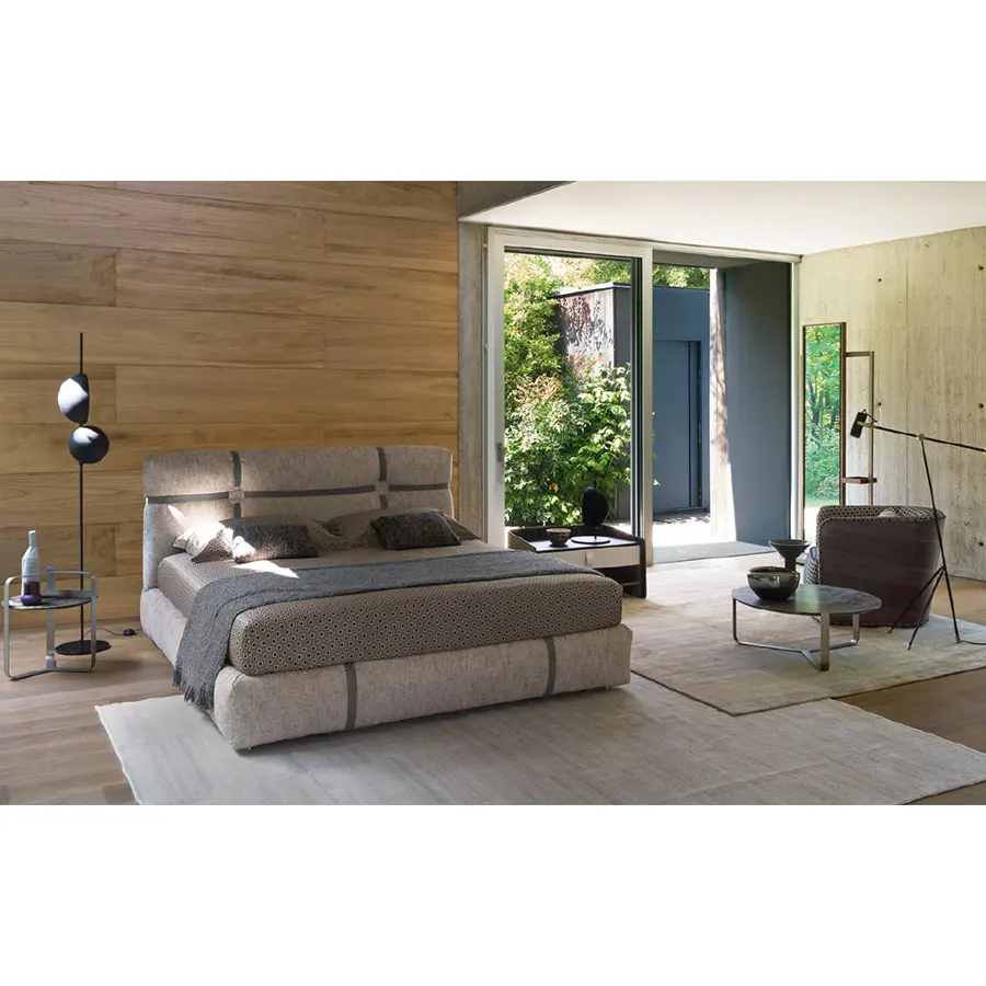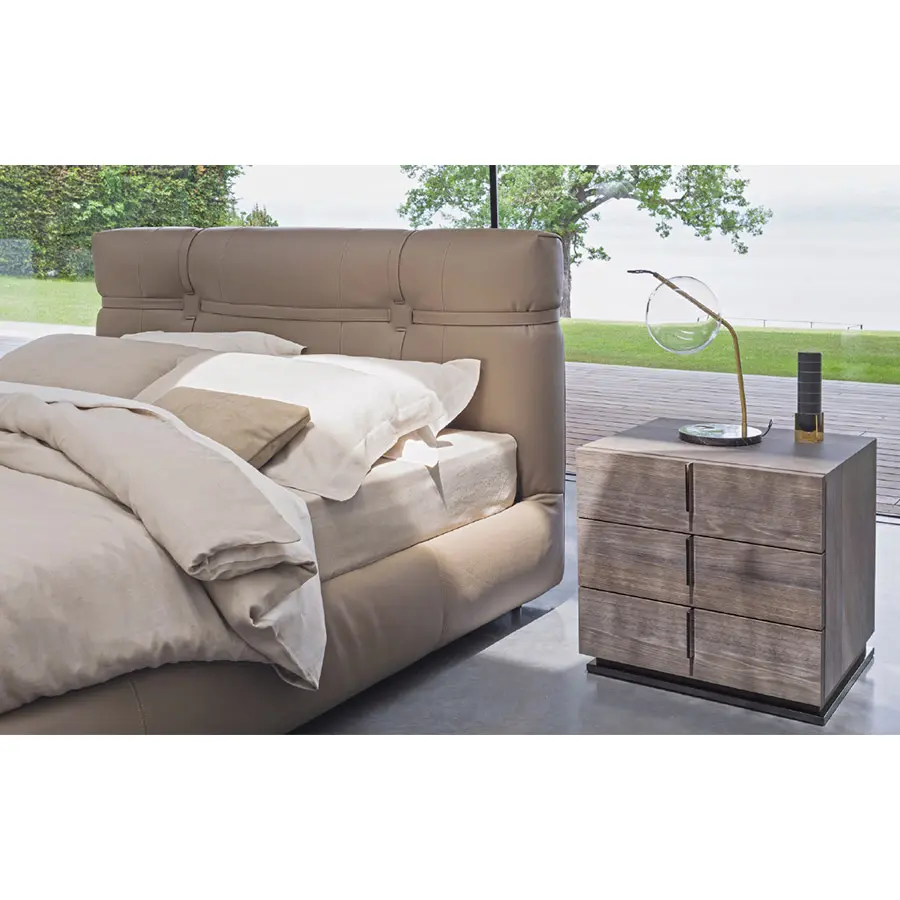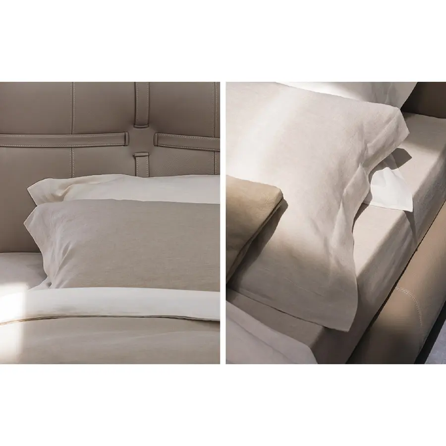 Se enlaza con el nombre de la famosa calle de Londres esta refinada cama de matrimonio, en cuya cabecera se destaca un detalle original, distintivo, difícil de reproducir. El diseño está enriquecido por un juego de ‘cintas’ que se cruzan en dos puntos de la cabecera: un dibujo decorativo que expresa toda la habilidad de un sastre acumulada en 40 años por los artesanos de Flou. La cama se puede revestir con tejido o piel, mientras que las ‘cintas’ siempre y exclusivamente son de piel, y está disponible con base de muelles Leonardo, base contenedor, base fija o base con movimiento eléctrico.