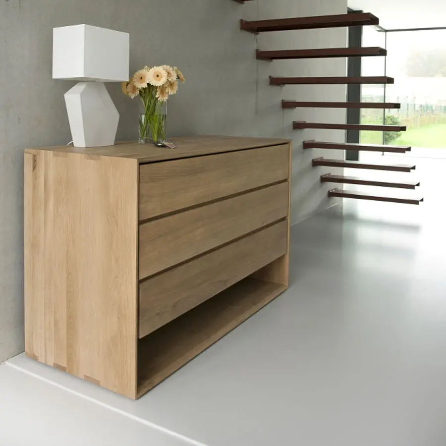 La colección Nordic de Ethnicraft combina un diseño refinado con la pureza de la madera maciza. Los detalles biselados de sus esquinas le aportan un extra de calidad y estética.