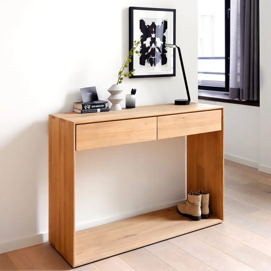 La colección Nordic de Ethnicraft combina un diseño refinado con la pureza de la madera maciza. Los detalles biselados de sus esquinas le aportan un extra de calidad y estética.