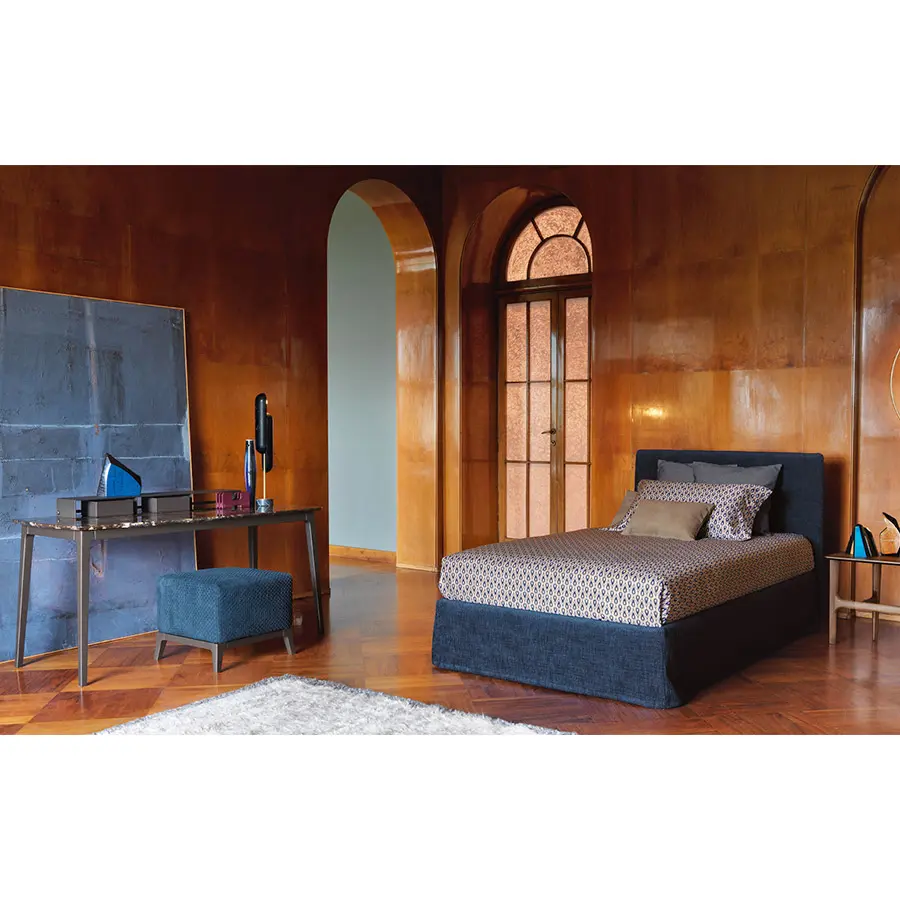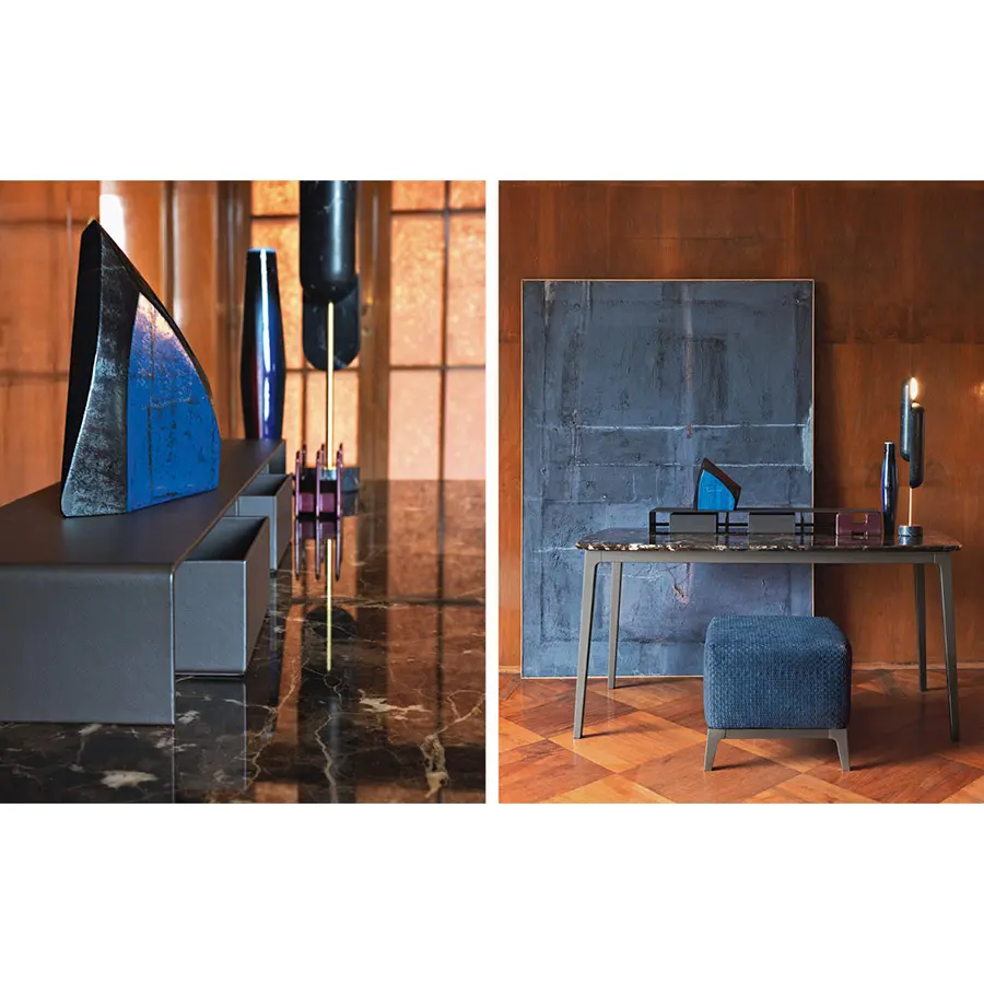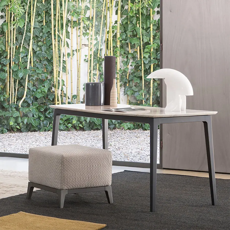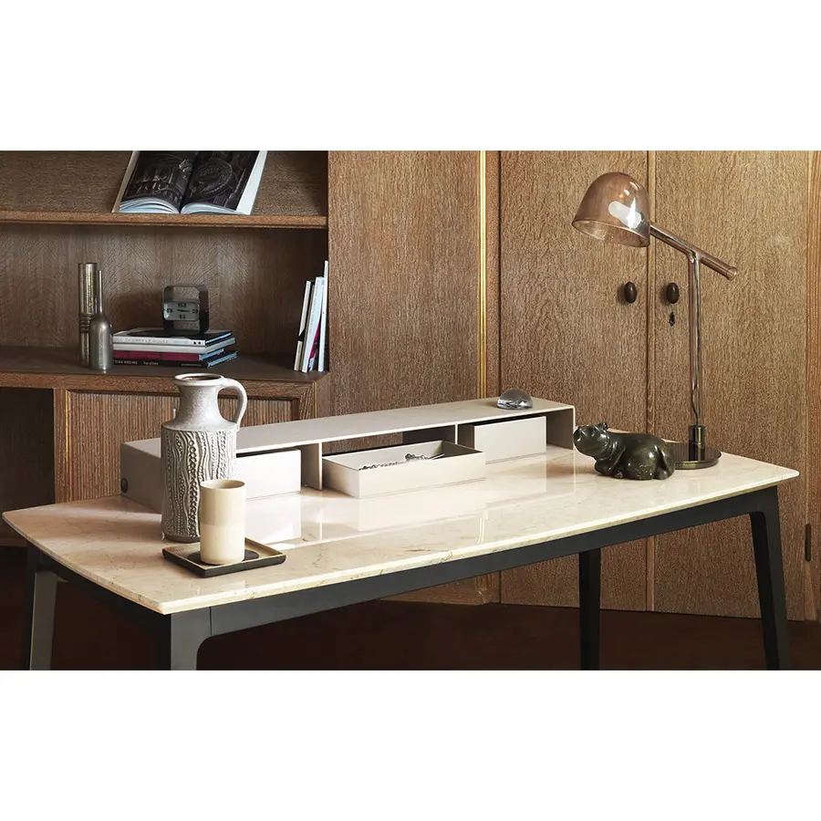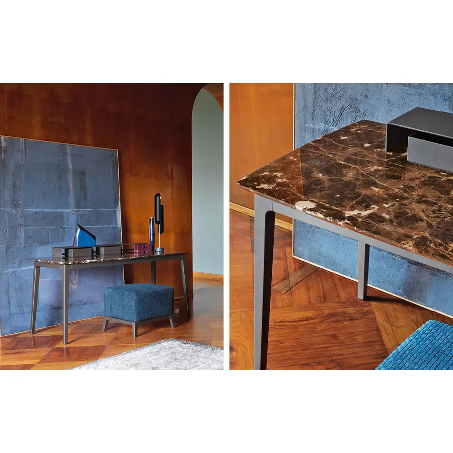 Escritorio y consola con estructura de haya maciza con acabado bruñido. Plano de mármol.