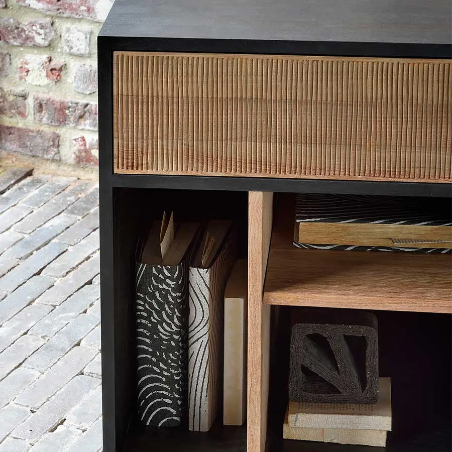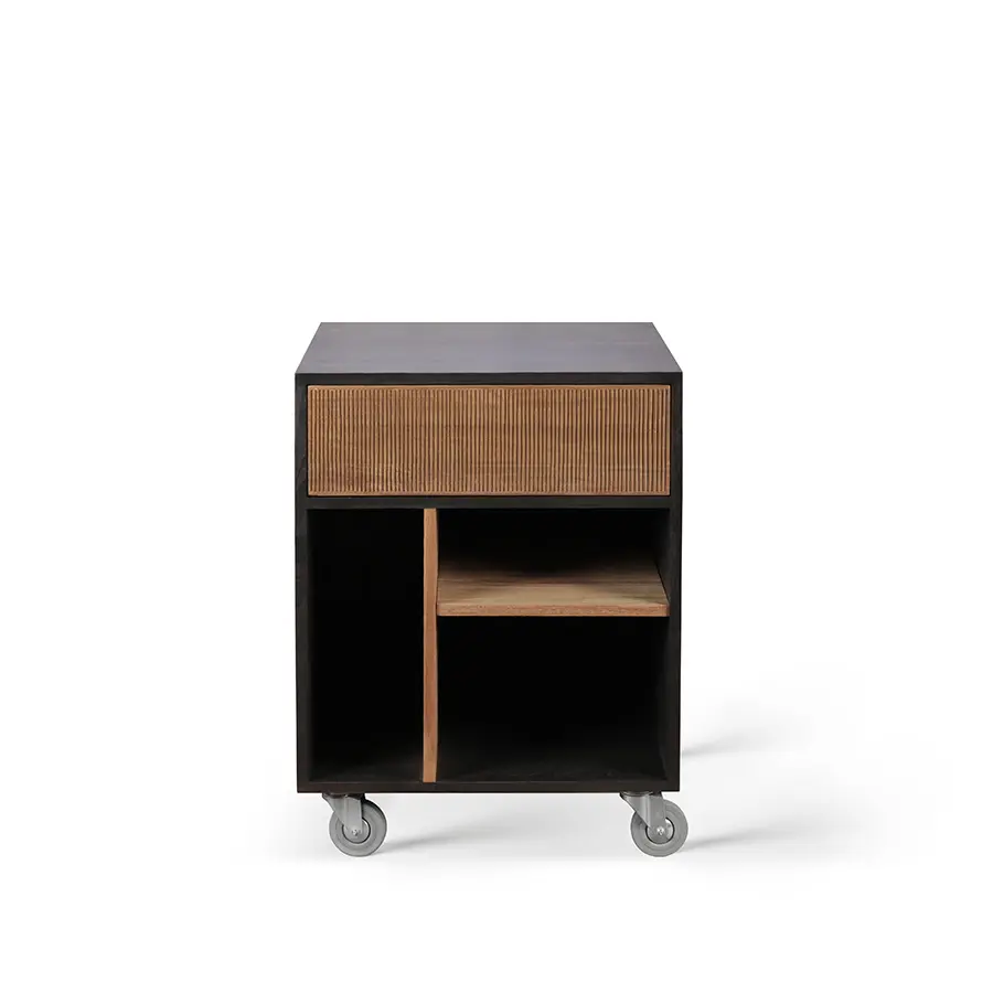 Gracias a la hermosa madera de teca, los detalles tallados a mano y las ruedas, la cajonera Oscar es una pieza versátil y muy funcional. Cabe perfectamente debajo del escritorio de su mismo nombre para conseguir almacenamiento adicional.