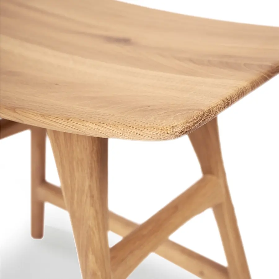 El taburete Osso es una pieza muy versátil. Este taburete de roble macizo ofrece un cómodo asiento en el comedor pero también es excelente por sí mismos para colocar contra la pared o al lado de un sofá. Disponible en madera maciza de roble, nogal o teñido en negro y en distintas alturas.