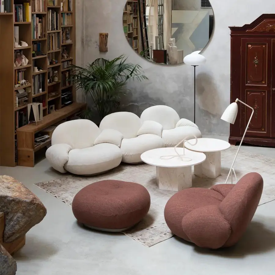 El legendario diseñador francés Pierre Paulin diseñó originalmente la Silla Pacha en 1975. Paulin diseñó la silla en armonía con el estilo de diseño cambiante de su época, reemplazando la austeridad del diseño de posguerra con un enfoque nuevo y vigoroso. Paulin logró darle una verdadera elegancia a las formas redondeadas de la Silla Pacha encontrando las proporciones perfectas, elevándola ligeramente sobre su base y trazando en la espuma y el tapizado líneas de costura inclinadas hacia adentro. A través de piezas como la Silla Pacha, Pierre Paulin fue pionero en la vida a nivel bajo; una forma moderna de vivir y sentarse en el suelo, deshaciéndose de las patas de la silla. Con el confort como punto de partida constante en sus diseños, las formas curvilíneas, caprichosas y orgánicas de la Silla Pacha están concebidas para servir al cuerpo, brindando tanto comodidad como calidez. Tanto hoy como cuando fue diseñada por primera vez, la Silla Pacha es una pieza honesta y funcional que aporta vida y carácter a cualquier entorno interior.