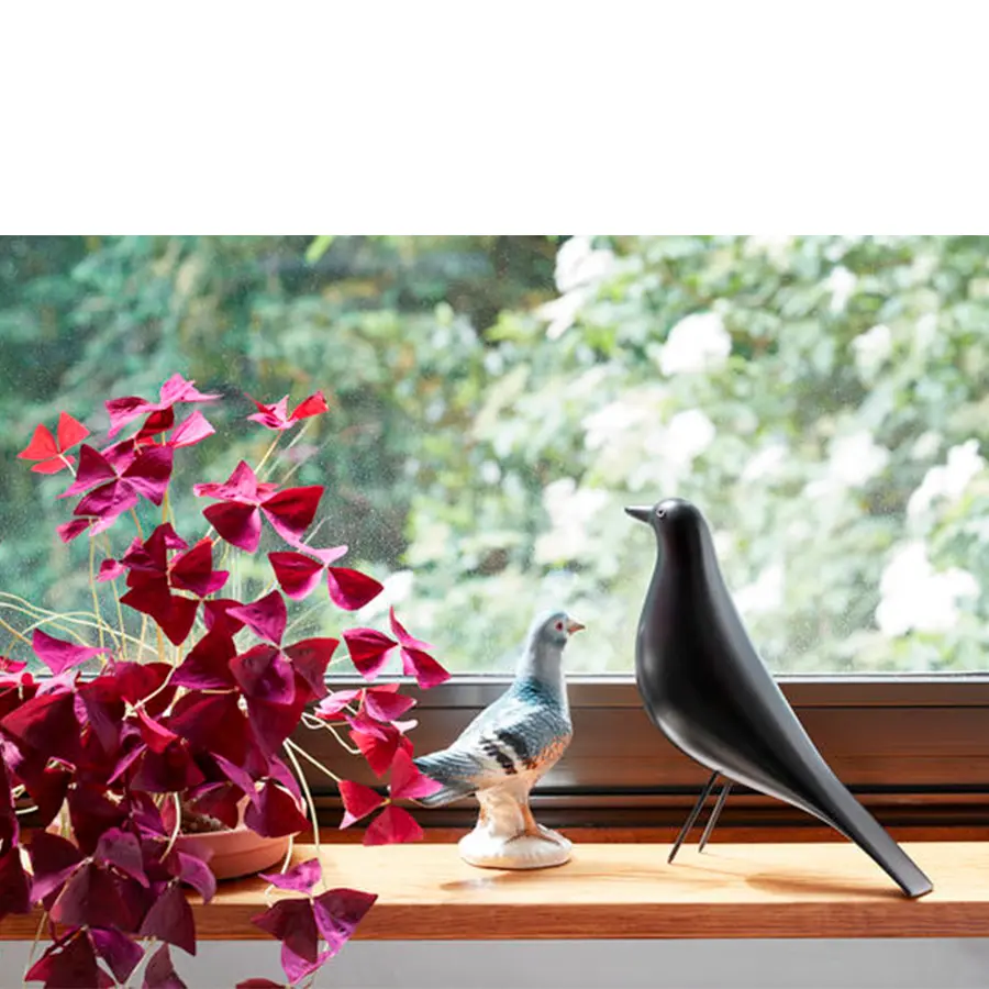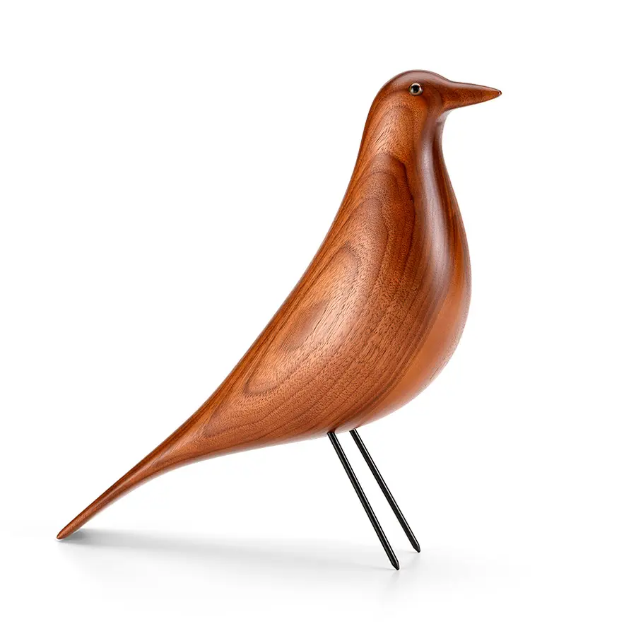 Charles y Ray Eames hicieron de su casa, la Eames House, una especie de collage donde convivían los más diversos objetos que traían de sus viajes. Durante más de cincuenta años, en el centro del salón había un pájaro de madera, una pieza de artesanía americana sin duda muy apreciada por Charles y Ray, ya que a menudo aparecía como accesorio en sus fotografías.
