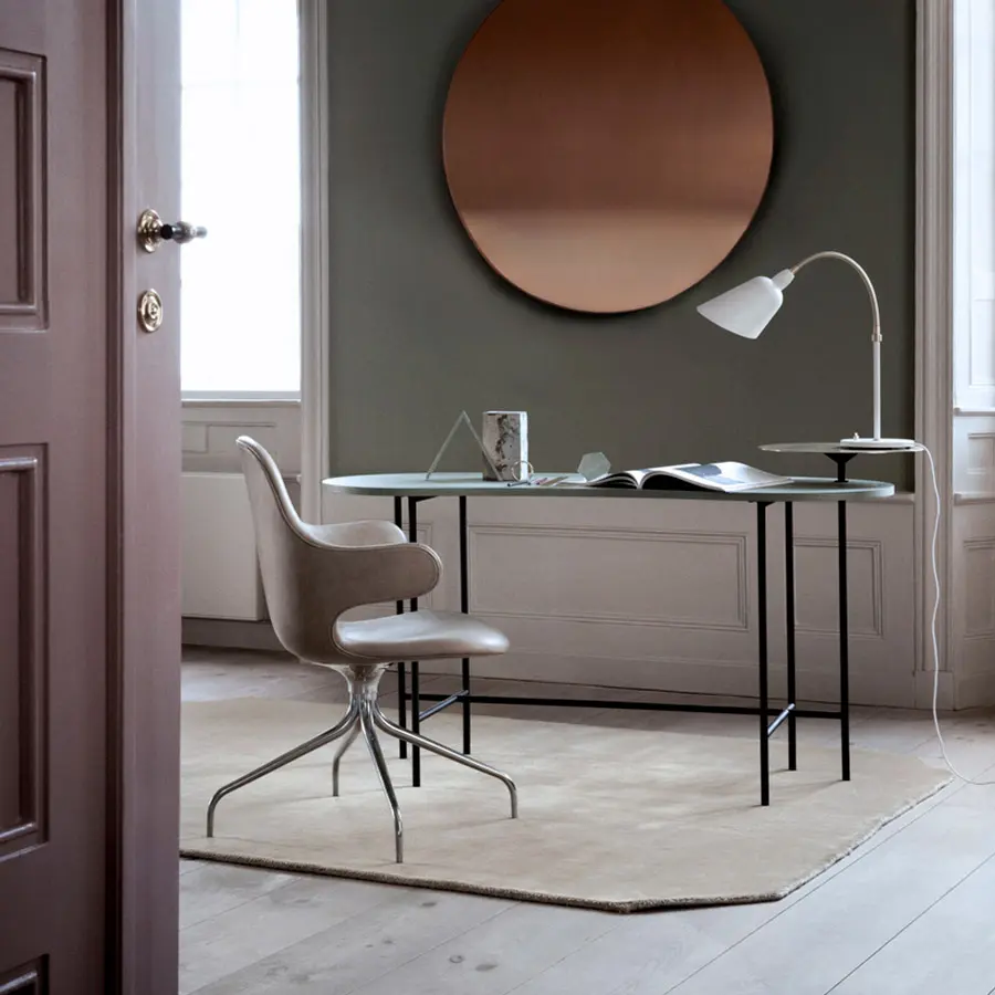 Gracias a su forma llamativa puede funcionar como un escritorio en una oficina o dormitorio, o una mesa auxiliar en una sala de estar o pasillo. Las dos encimeras, además de darle un toque de elegancia, permite organizar elementos para un entorno de trabajo. Una mezcla ecléctica de materiales y colores lujosos, que encarna un enorme nivel de diseño contemporáneo.