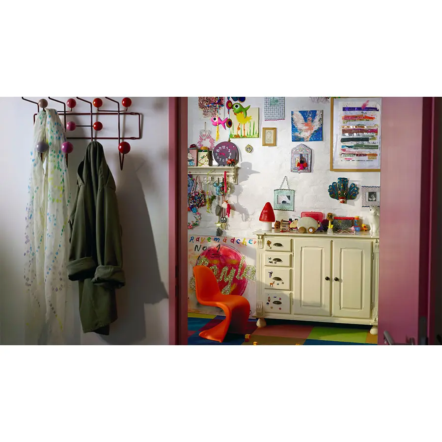 Con igual forma e idénticos materiales que el modelo estándar, la versión infantil es aproximadamente un 25 % más pequeña que la Panton Chair original. Esto hace que la Panton Junior sea una silla ideal para niños desde la guardería hasta la escuela primaria.