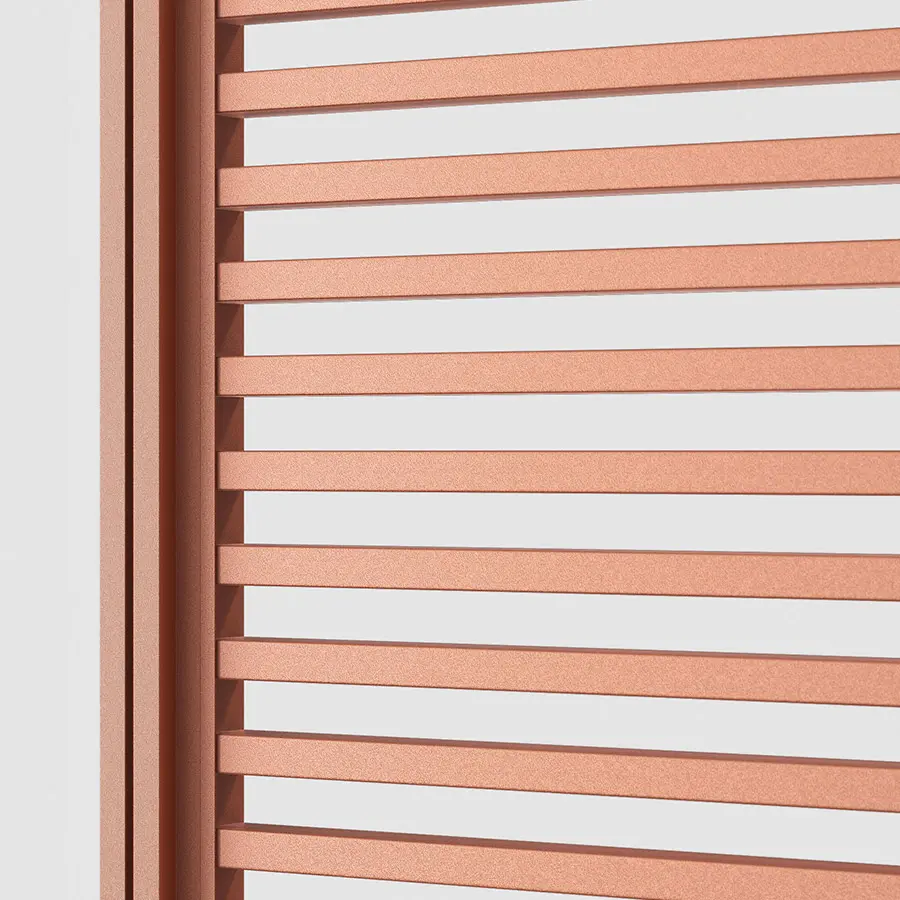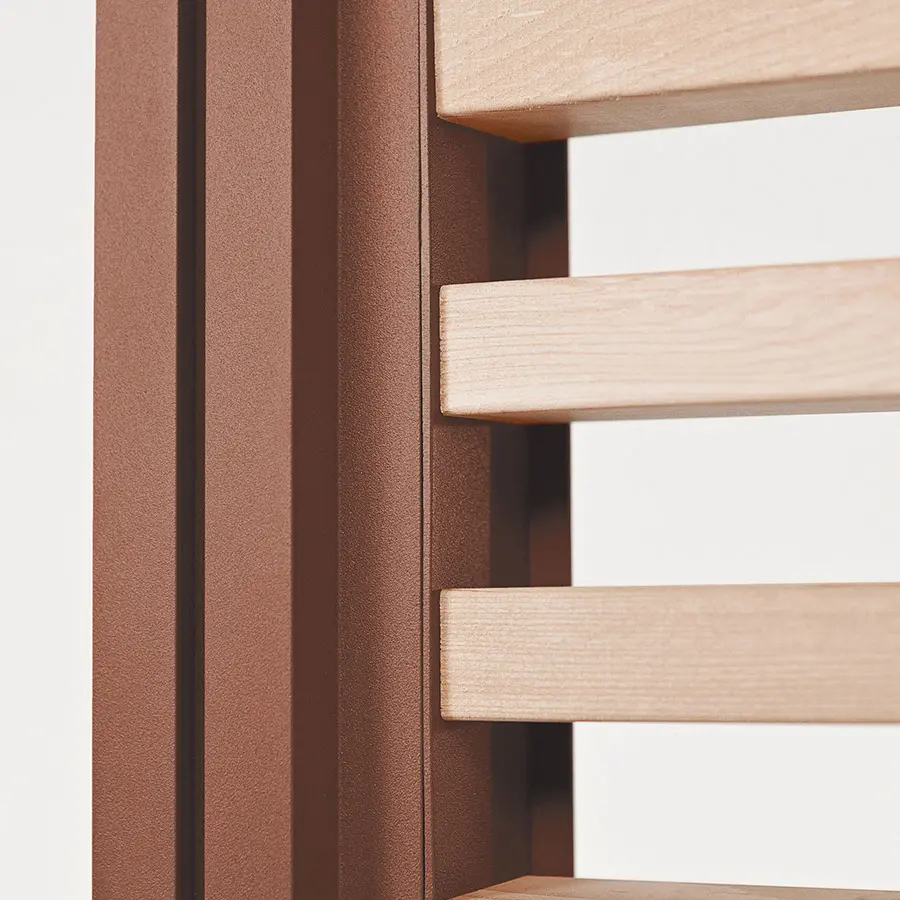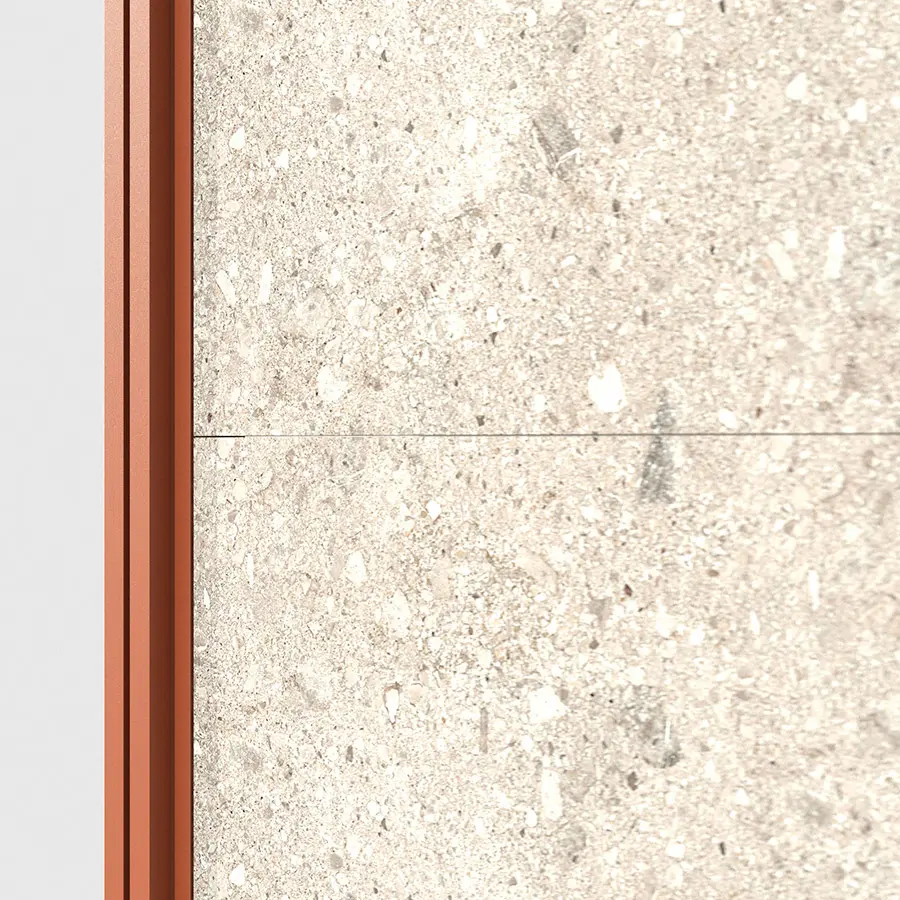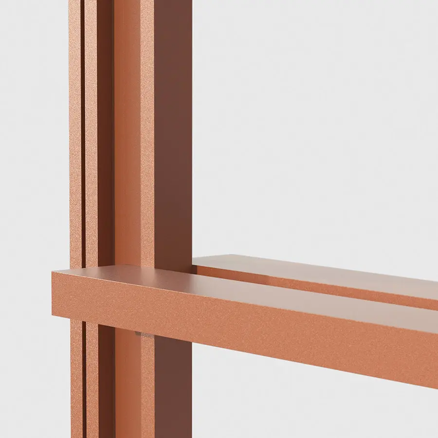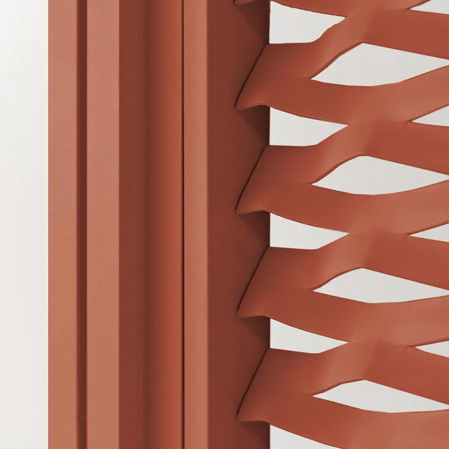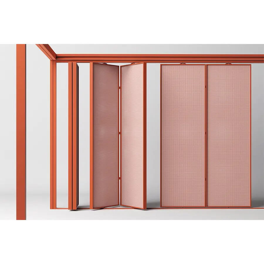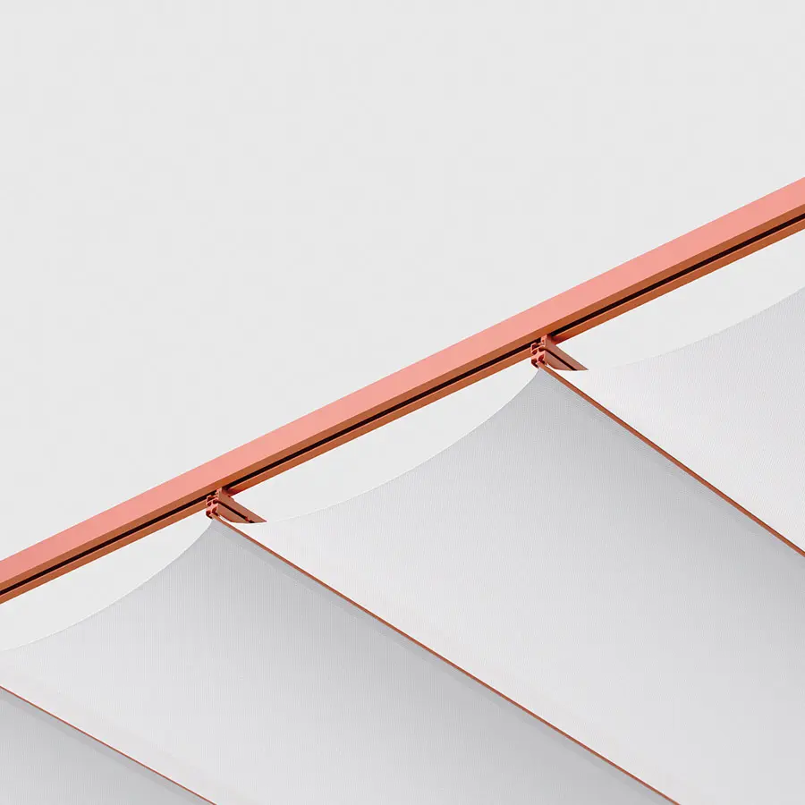 Monica Armani moderniza la clásica cama de columnas, dándole una silueta geométrica en aluminio con lacado en polvo. El sofá cama se puede configurar completamente a su gusto. Así, por ejemplo, puede elegir el panel posterior y la cubierta de aluminio o en listones de madera de teca, o en tela Sunvision deslizante, un tipo de tejido patentado que filtra los rayos solares sin bloquear la luz.