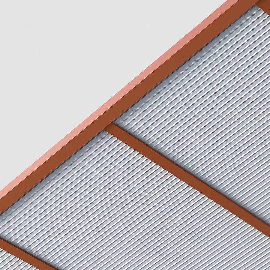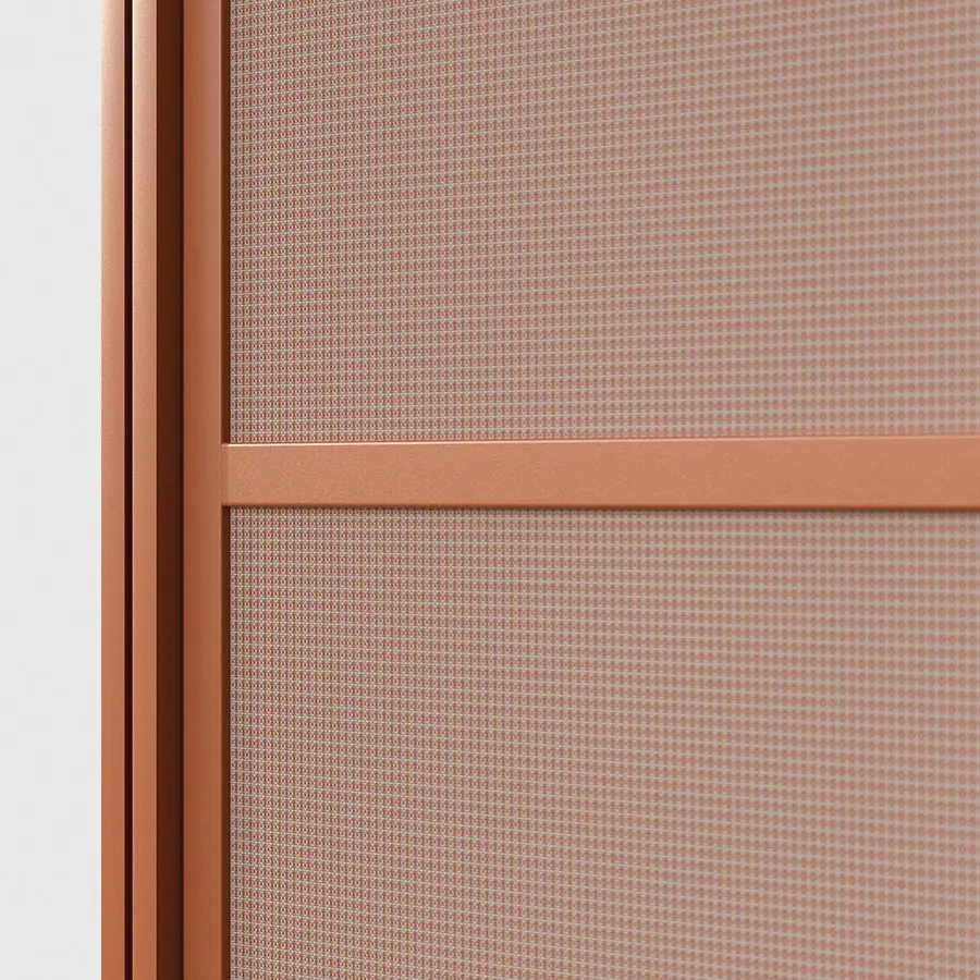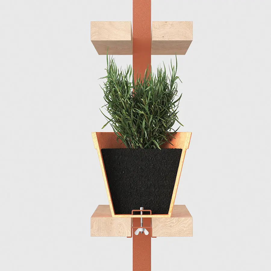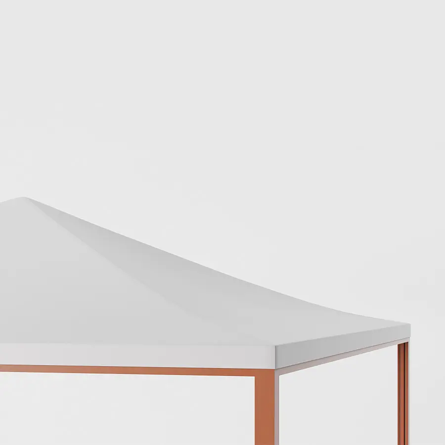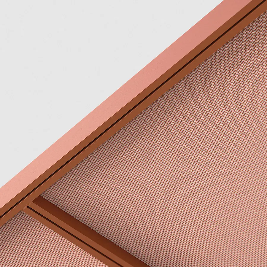 La armadura está disponible en dos colores; también puede complementar el asiento en Batyline con dos cómodas almohadas exteriores resistentes a la lluvia y a los rayos UV. Una práctica mesa y cortinas transparentes completan el conjunto.