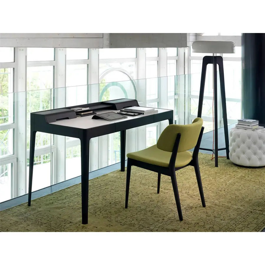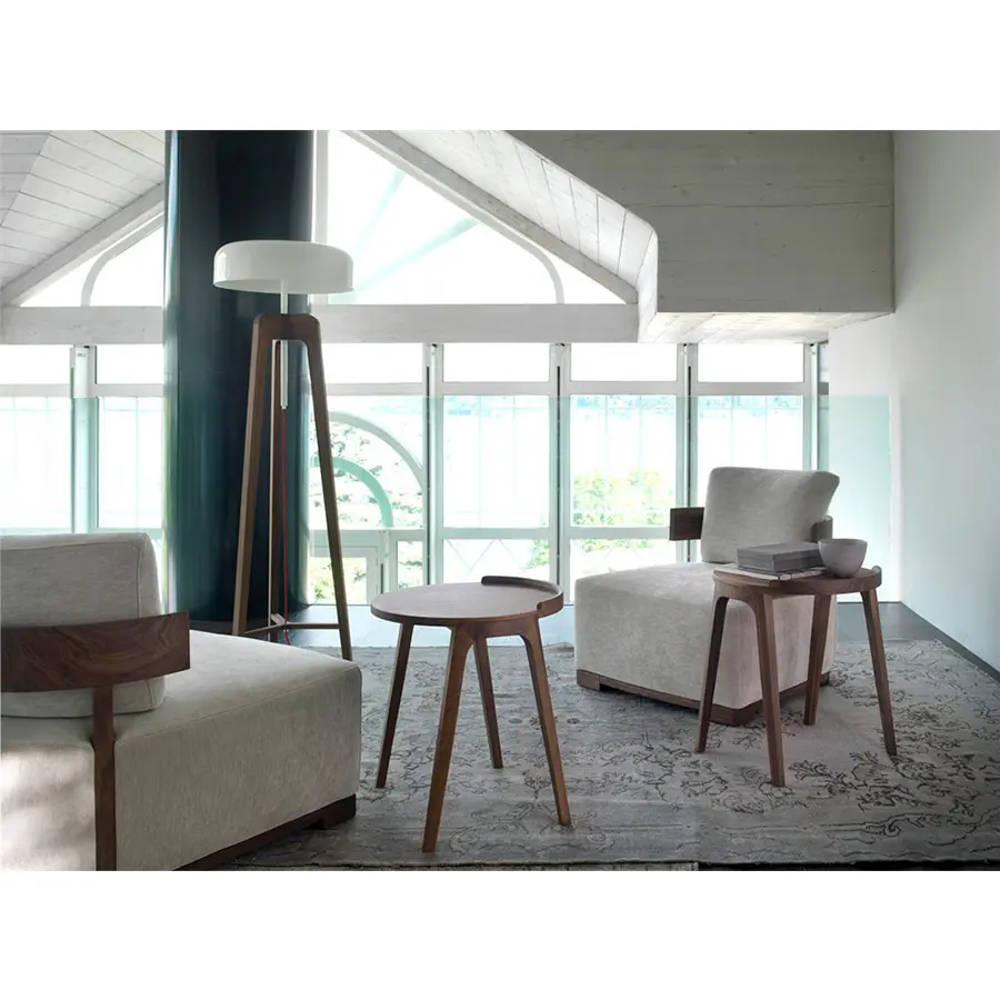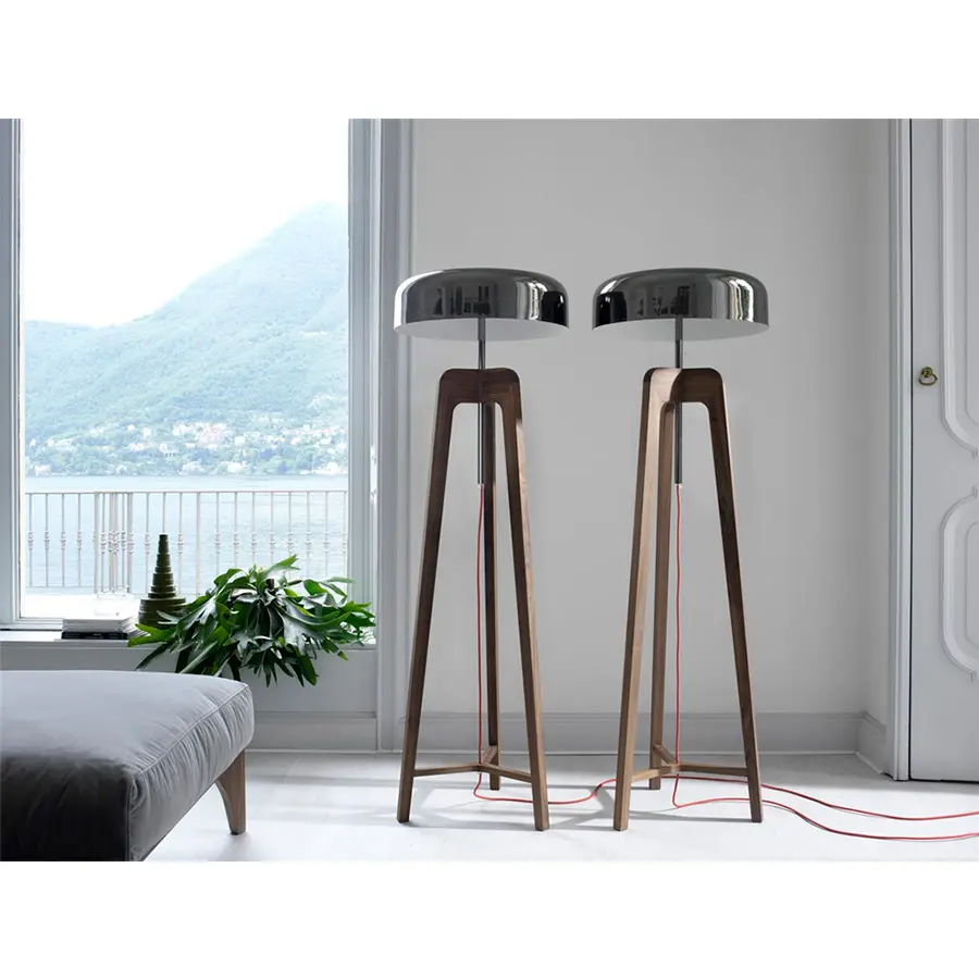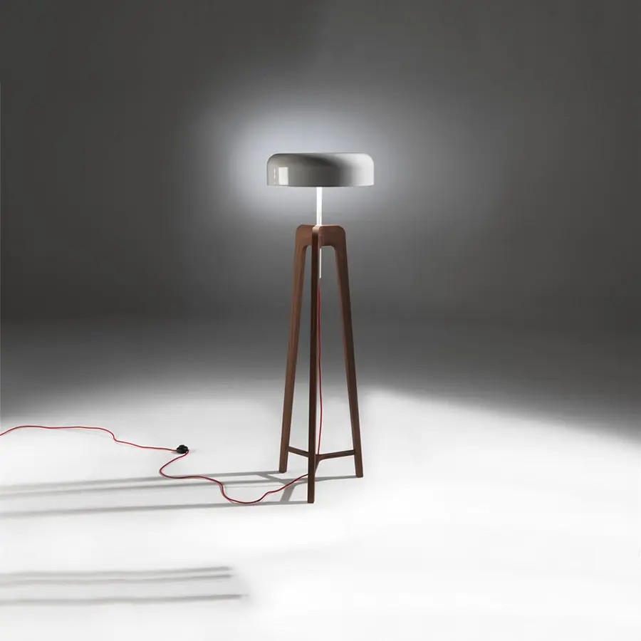 Lámpara de pie en nogal canaletta o fresno macizo y pantalla de hojalata.