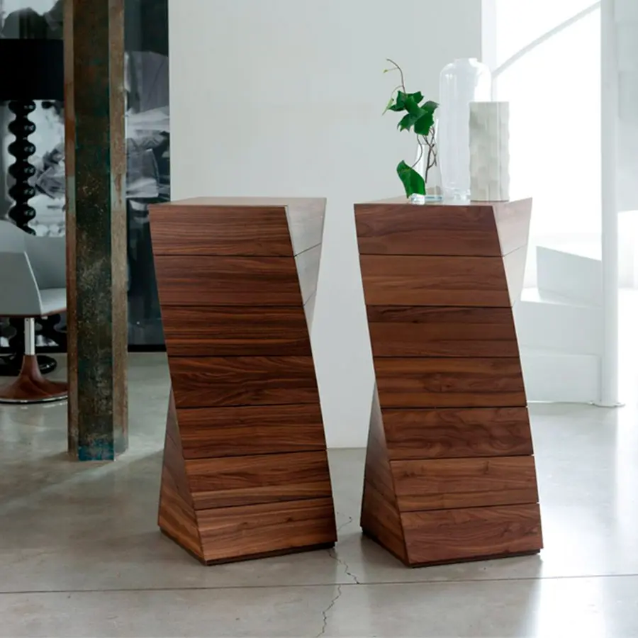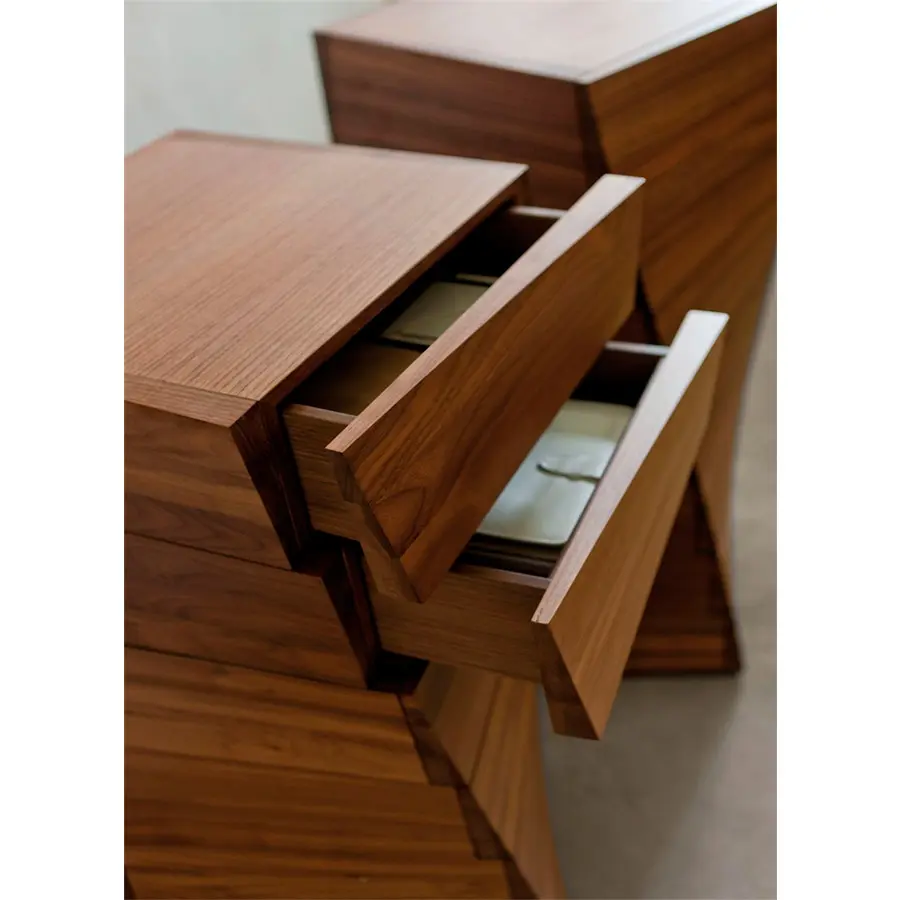 Serie de cajoneras con estructura en nogal canaletta macizo. Diferentes alturas en base a los cajones que tenga.