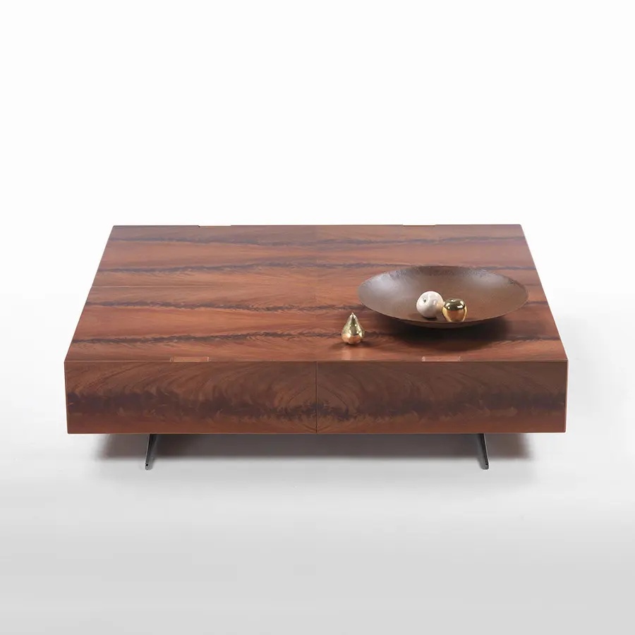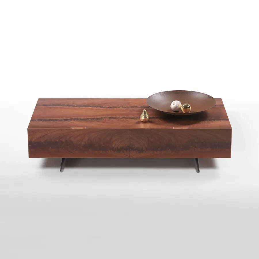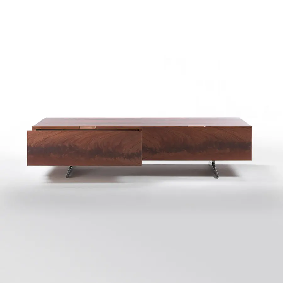 La colección de contenedores Piuma combina el rigor de la forma con la rica expresividad de la madera. La estudiada sencillez del diseño es un contrapunto a la elección del contrachapado realizado con maderas raras y preciosas, como la pluma de caoba, el ébano amara, el nogal americano y el fresno, que se ofrecen en varios tonos. La ausencia de asas, que se encuentran directamente en la estructura con unas ranuras talladas con un corte de 45°, acentúan la línea esbelta y esencial de estos muebles que se prestan para su colocación en cualquier estancia y son fáciles de combinar con todas las mesas, sillas, sofás y sillones de la colección Flexform. Los contenedores Piuma están disponibles en numerosas configuraciones, tanto verticales como horizontales: armarios con puertas y cajones, aparadores, muebles para televisores y mesas de centro con cajones. Todos los elementos están perfectamente acabados, incluso en la parte trasera, por lo que también se pueden colocar en el centro de la habitación.