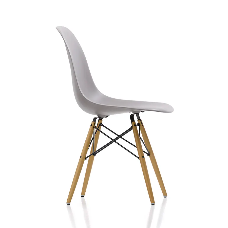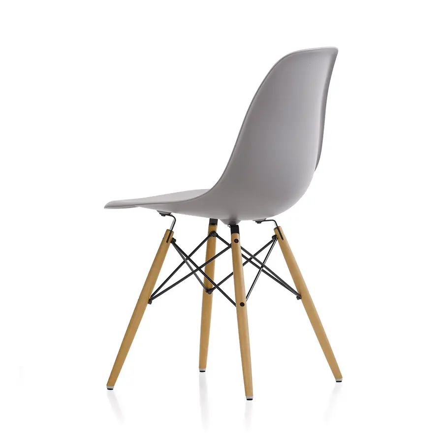 «Getting the most of the best to the greatest number of people for the least» (Conseguir más de lo mejor para más gente y por menos): con estas palabras, Charles y Ray Eames describieron uno de sus principales objetivos como diseñadores de muebles. Ninguna de sus obras se acercó tanto a este ideal como la Plastic Chair. Durante años, ambos trabajaron sobre la idea de una carcasa de asiento de una sola pieza moldeada para adaptarse a los contornos del cuerpo humano. En la década de los 40, como sus experimentos con madera contrachapada y chapa de aluminio no les daban los resultados esperados, la búsqueda de materiales alternativos les llevó a la resina de poliéster reforzada con fibra de vidrio.