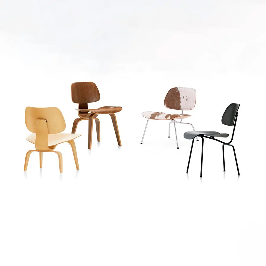 En experimentos que duraron varios años, Charles y Ray Eames buscaron nuevos procedimientos para adaptar la madera laminada moldeada tridimensional a las formas del cuerpo humano. El resultado fueron las sillas del Plywood Group, que se han convertido en clásicos con un aspecto que sigue siendo contemporáneo en la actualidad. En el Plywood Group, también combinaron los asientos y los respaldos con distintas bases. Gracias a la forma orgánica de las carcasas de madera laminada y a los respaldos ligeramente flexibles, estas sillas ligeras y compactas son extremadamente confortables, incluso en las versiones no tapizadas.
