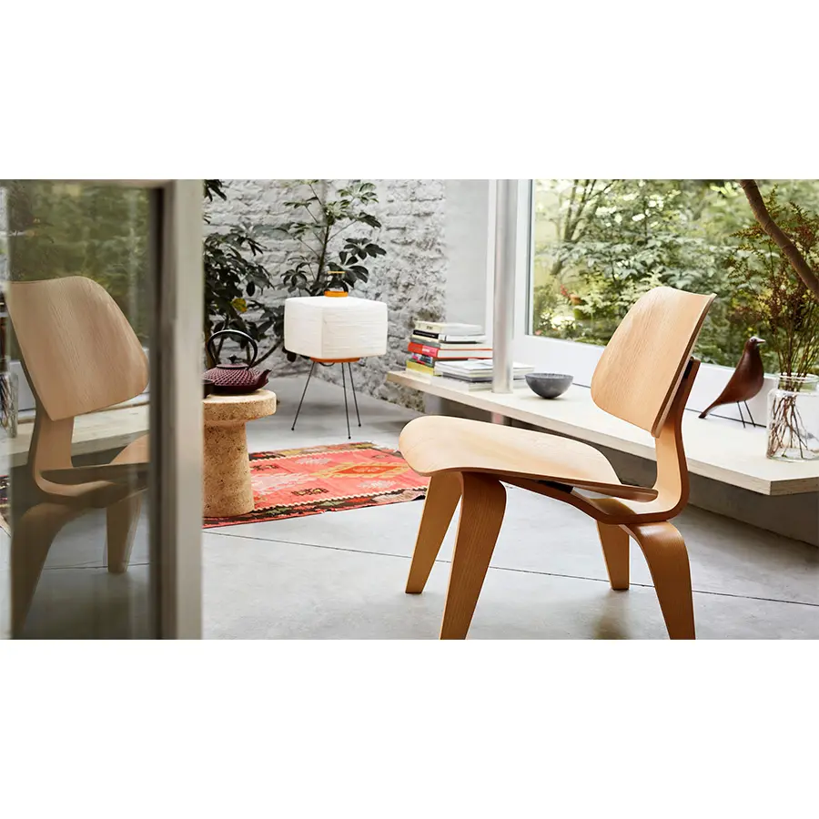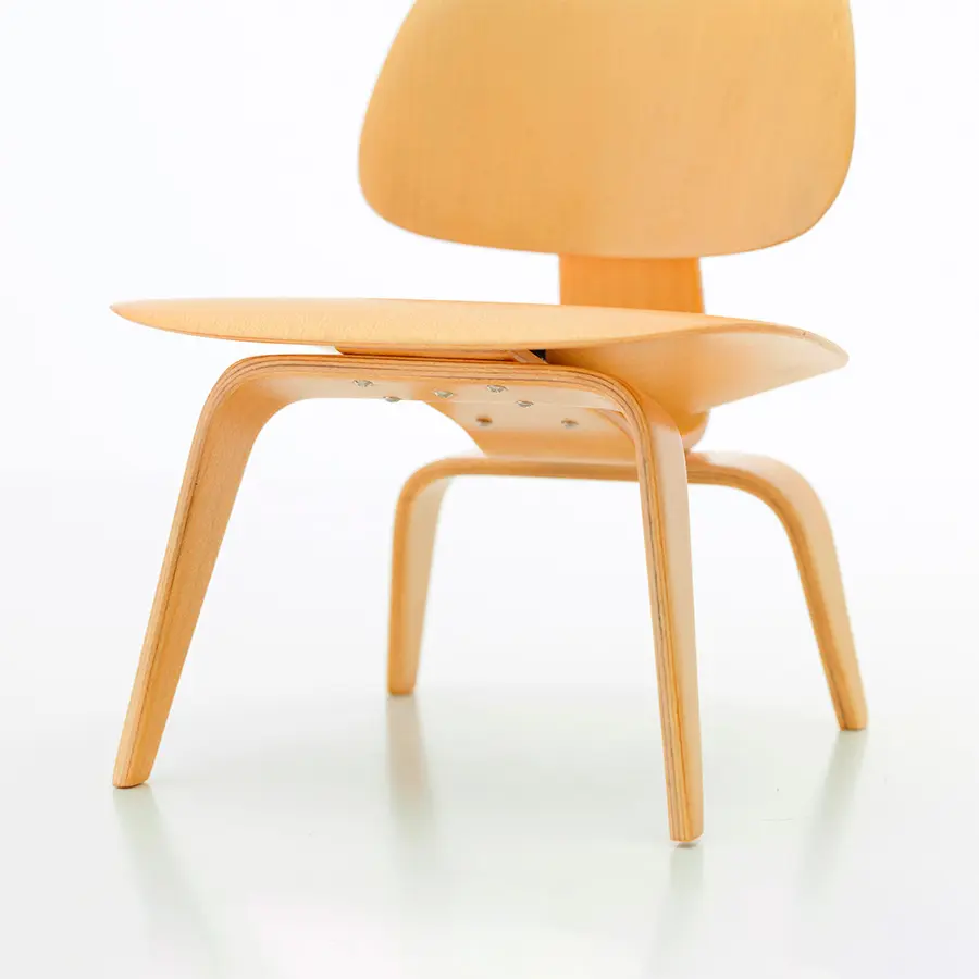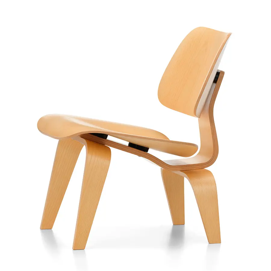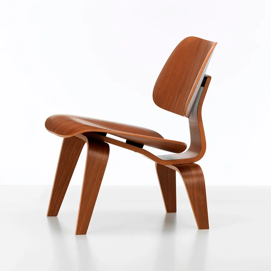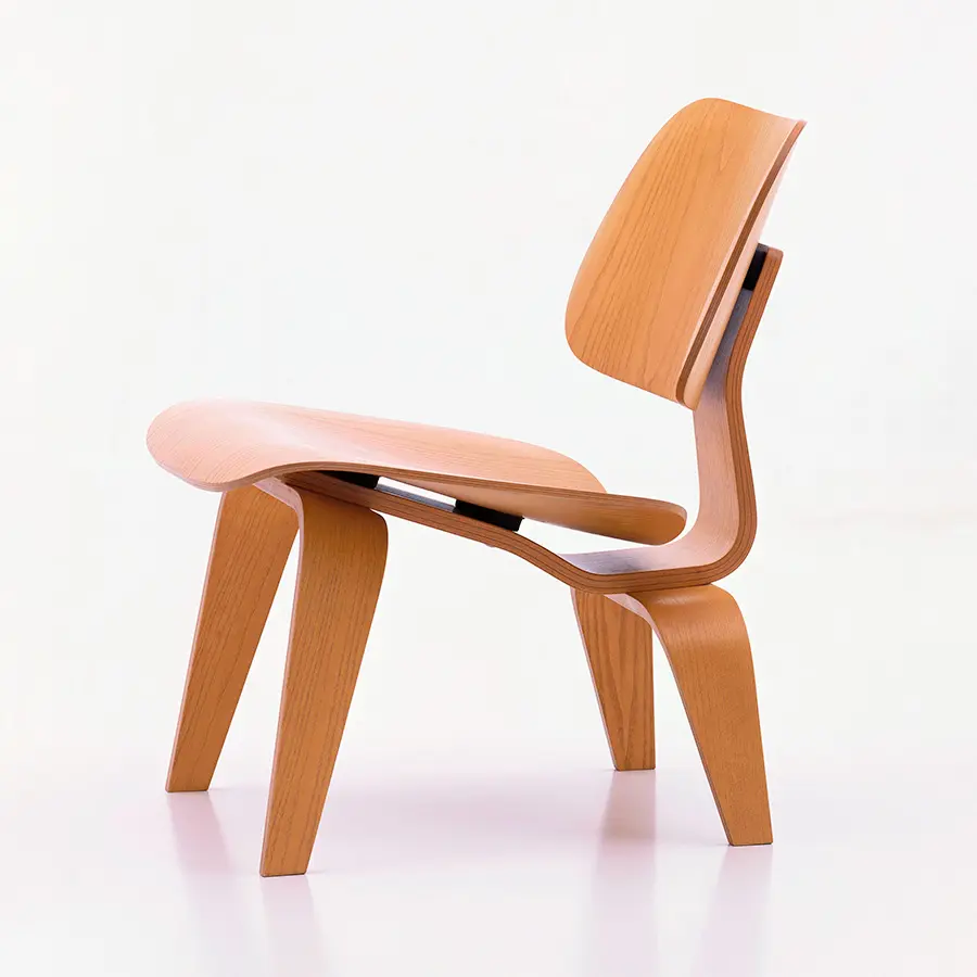 La pequeña e icónica Lounge Chair Wood (LCW) es un icónico diseño de Charles y Ray Eames que data del periodo en que experimentaban con contrachapado de madera moldeado tridimensionalmente.