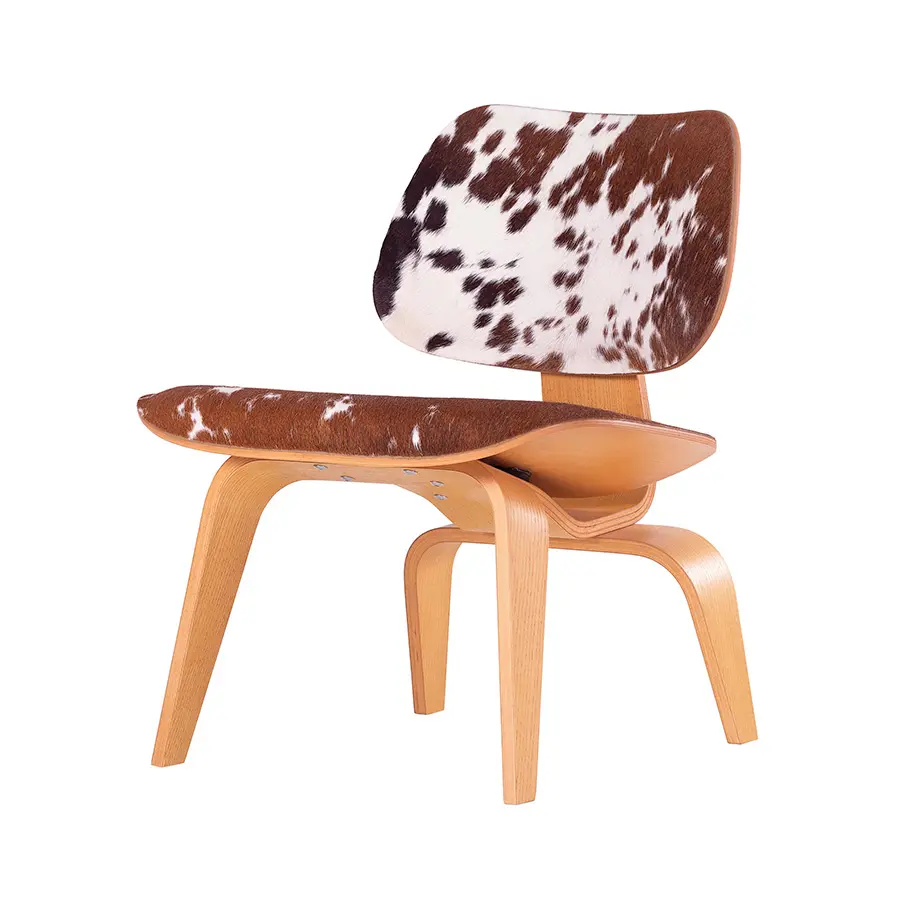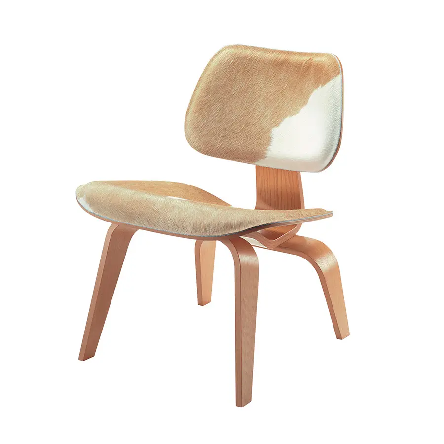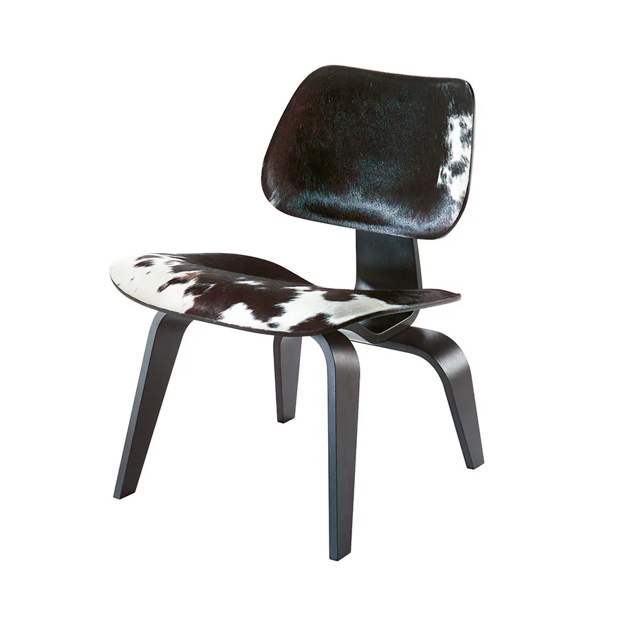 Asiento, respaldo y bastidor inferior de madera laminada moldeada en fresno natural o barnizada en negro o rojo (LCW). Asiento y piezas del respaldo unidas al bastidor inferior mediante elementos de goma y metal (Shock Mounts). La LCW también está disponible con tapicería de piel o cuero.