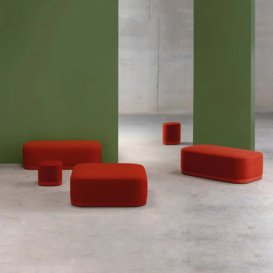 Con una amplia variedad de tapicerías y acabados, Puck es una colección osada y moderna que aporta un toque de color a cualquier espacio. La base está disponible con ruedas para dar dinamismo al asiento, creando una pieza única.