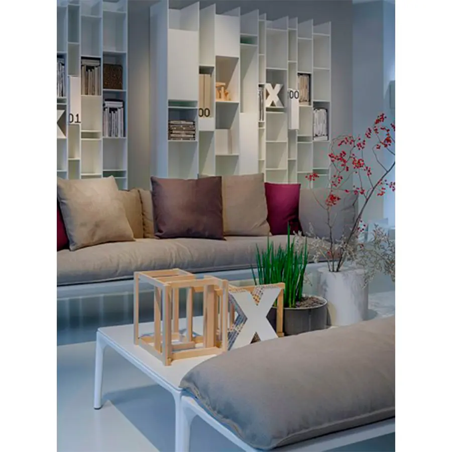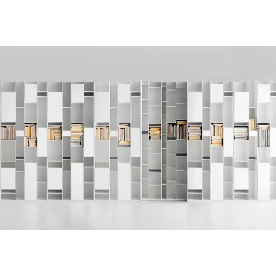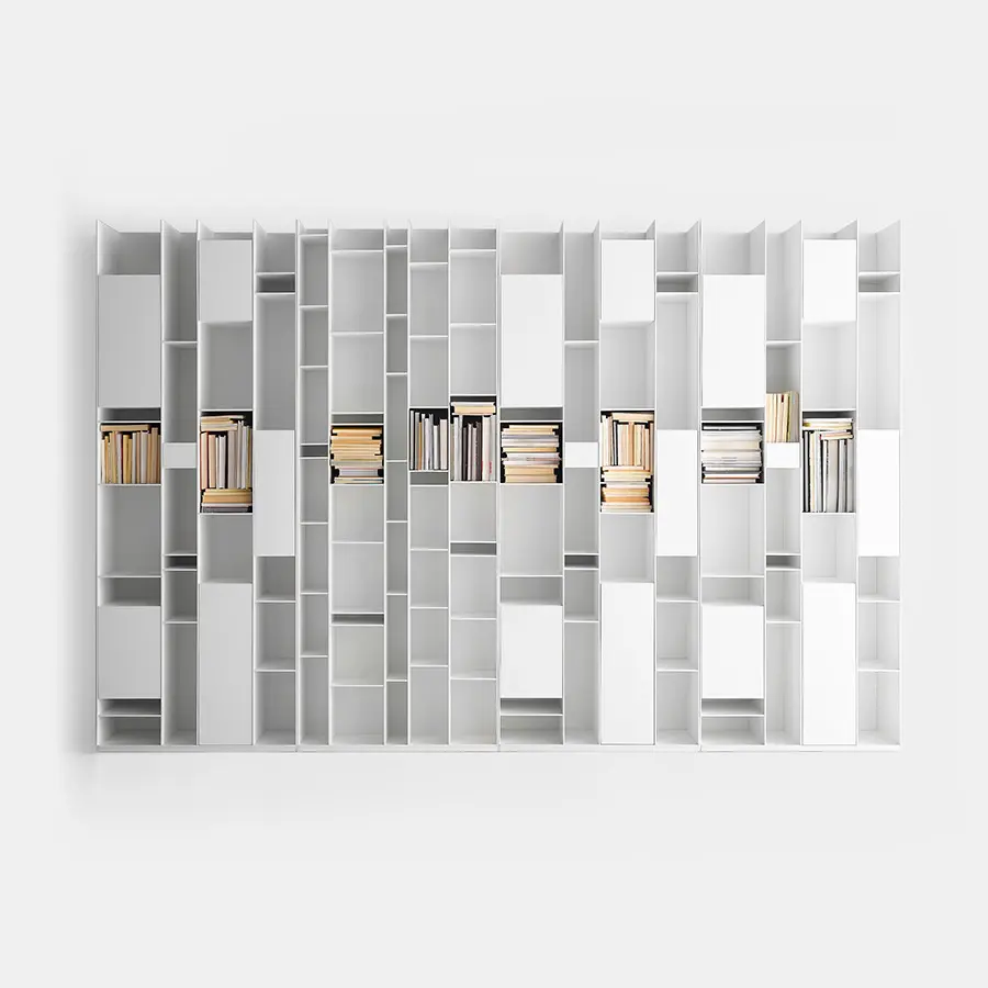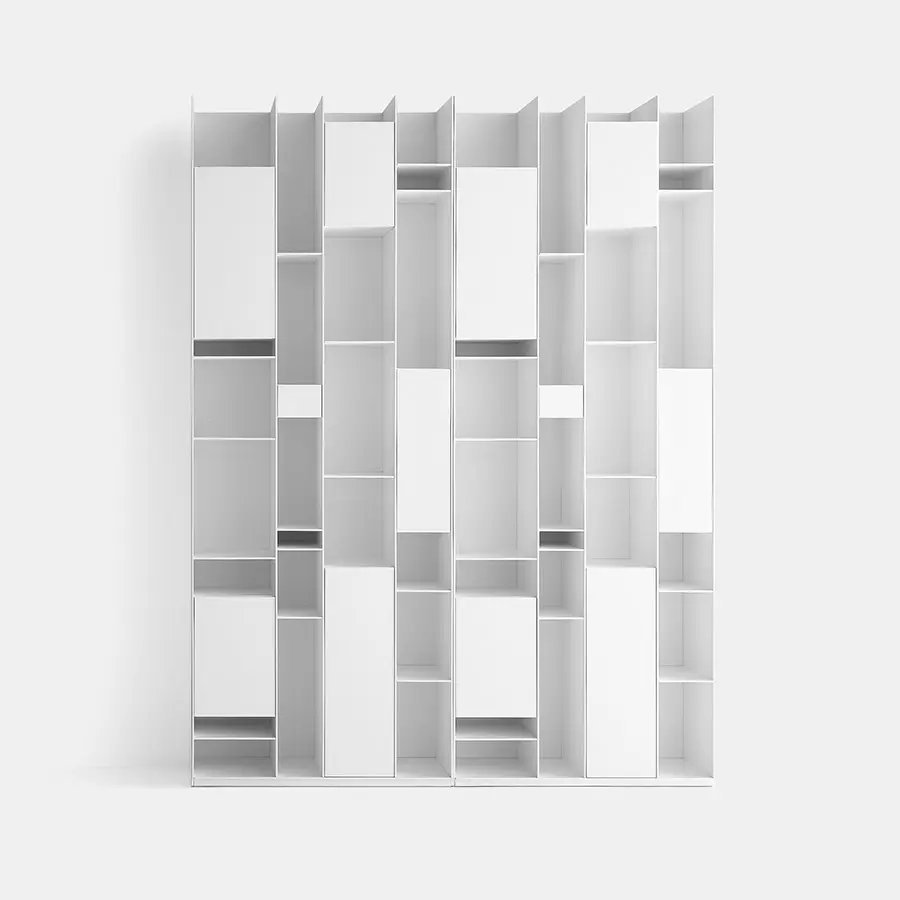 Una estantería con compartimentos de tamaño estándar, abiertos o cerrados por puertas, y con un cajón. Al flanquear más unidades, también con Random Cabinet o Random, se pueden crear configuraciones de gran impacto.