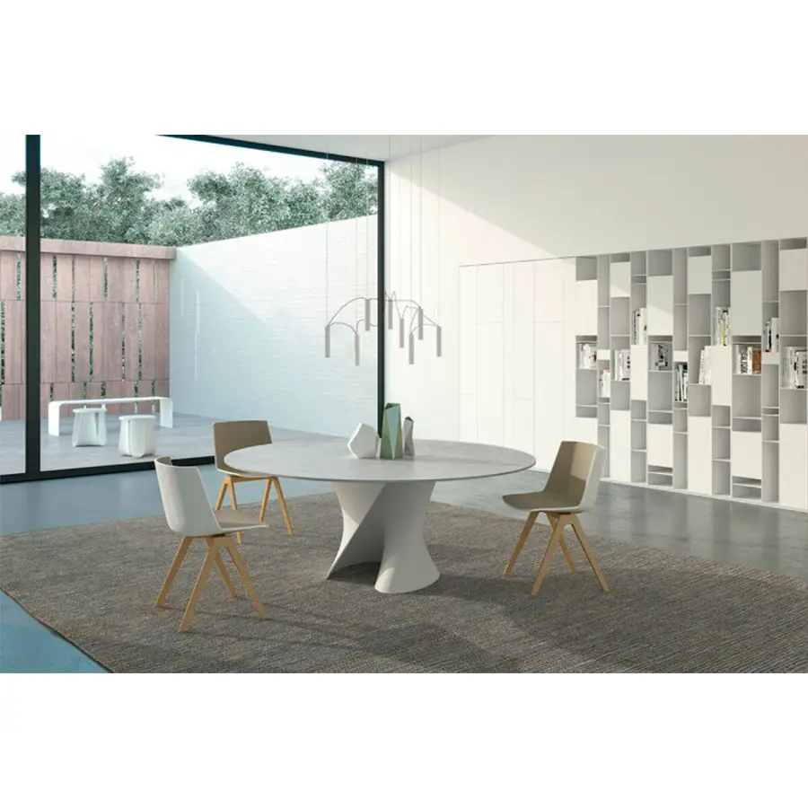 Hecho de tableros de fibra de madera de densidad media, en laca blanca micro gofrada. Montantes y estantes de espesor 6 mm; Puertas de espesor 12mm. La parte posterior está hecha de tablero recubierto de melamina blanca (espesor 10 mm).