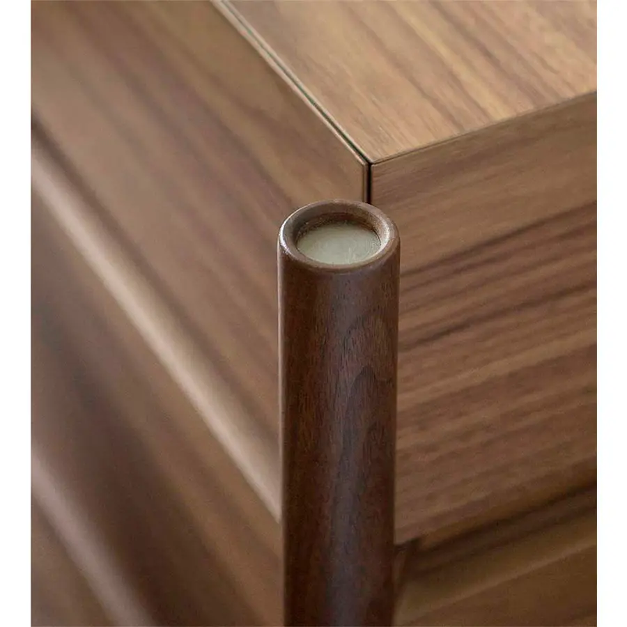Cajonera de tres cajones con sistema de cierre automático desacelerado con estructura de nogal canaletta macizo y cajones de madera o revestido de piel o piel extra.