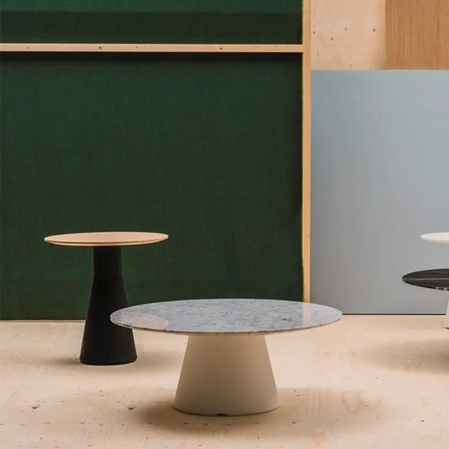 Reverse es una colección de bases para mesas con columna central realizadas en polietileno 100% reciclable. La base Reverse es un icono de elegancia y estabilidad estructural, y plenamente combinable con una amplia variedad de sobres de acabados y prestaciones muy diversos. Dispone de diferentes opciones en diámetros y alturas permitiendo ofrecer una solución estilizada para mesas auxiliares, altas o de reunión. Todos los modelos de base Reverse están disponibles en acabado mate, laca brillo en una gama de seis atractivos colores o madera.