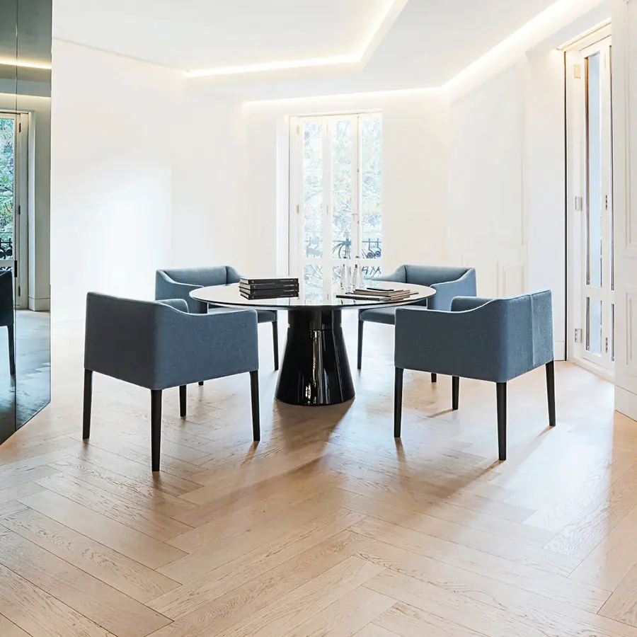 Reverse es una colección de bases para mesas con columna central realizadas en polietileno 100% reciclable. La base Reverse es un icono de elegancia y estabilidad estructural, y plenamente combinable con una amplia variedad de sobres de acabados y prestaciones muy diversos. Dispone de diferentes opciones en diámetros y alturas permitiendo ofrecer una solución estilizada para mesas auxiliares, altas o de reunión. Todos los modelos de base Reverse están disponibles en acabado mate, laca brillo en una gama de seis atractivos colores o madera.