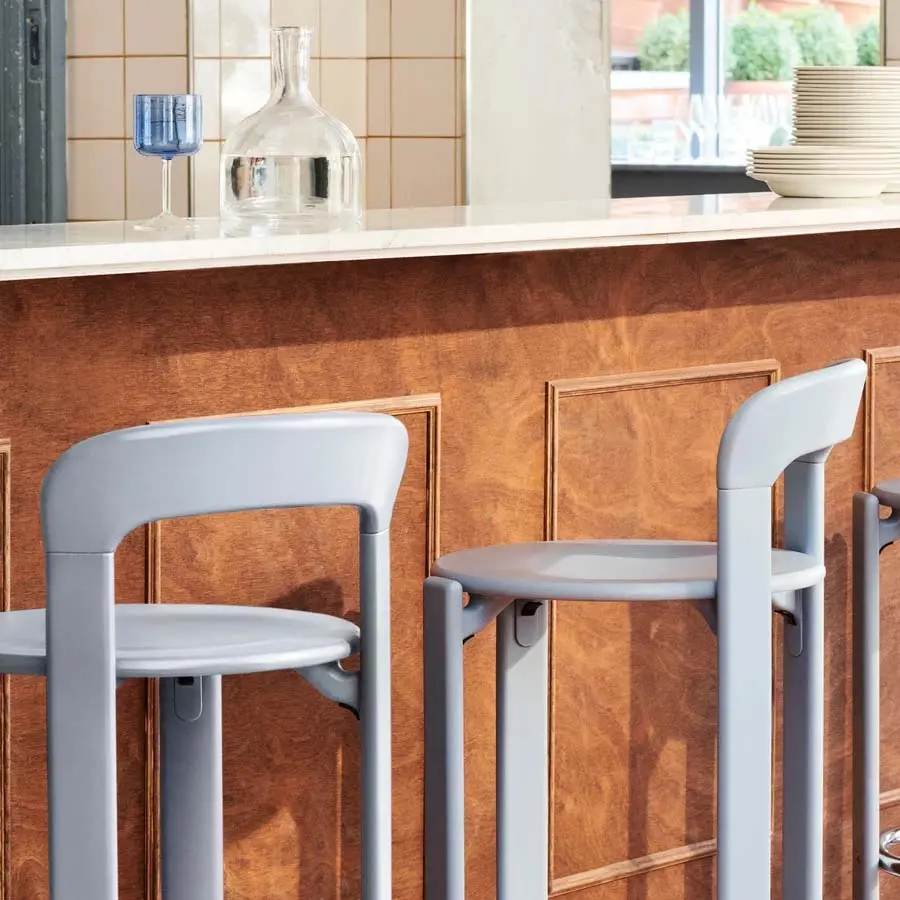 El Taburete de Bar Rey, traduce la icónica forma de la Silla de Comedor Rey en un taburete de bar funcional. Al alargar las delgadas patas de haya, acortar el respaldo e insertar un reposapiés de acero cromado, el distintivo lenguaje de diseño del Rey es inconfundible. Manteniendo el carácter y el estilo del diseño original, Hay ha implementado cambios ligeros en las dimensiones y nuevos colores para adaptarse y satisfacer los entornos modernos. Con bordes redondeados y una apariencia despejada, el taburete de bar ofrece una impresión acogedora, ideal para una variedad de estilos y entornos interiores.
