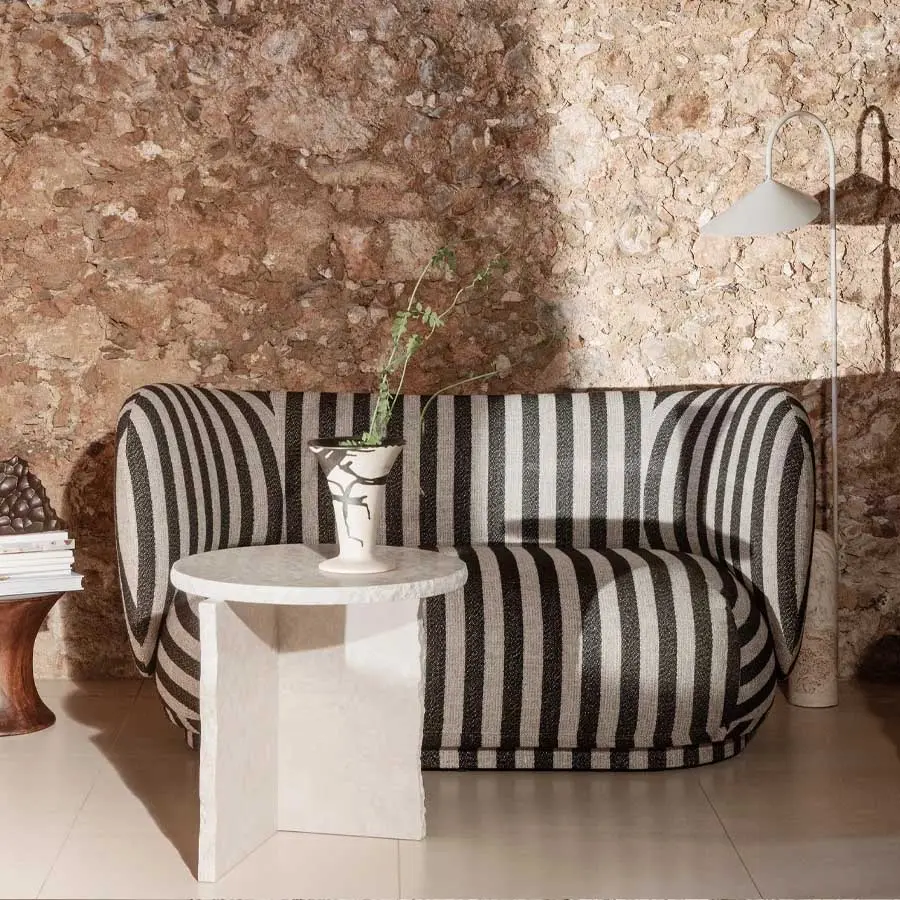 Sofá cómodo, cálido y acogedo de ferm LIVING es tan elegante como encantador. Tapizado en tejidos hermosos, su perfil redondeado y espacioso es perfecto para relajarse con la familia y los amigos. Con una estructura duradera y sin patas, su tapizado expansivo se extiende hasta el suelo, resultando en un sofá elegante y único que se integra perfectamente en cualquier entorno.