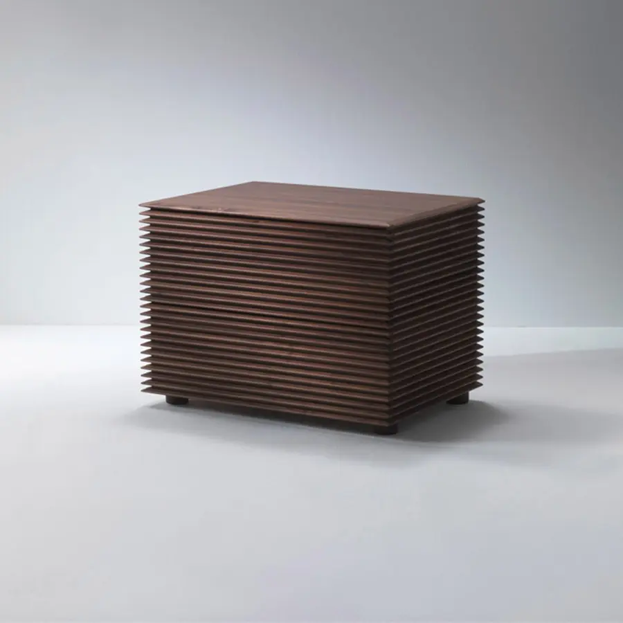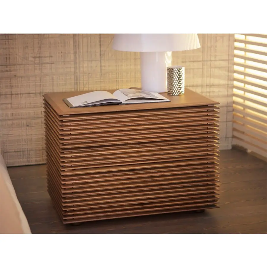 Mesa de noche con estructura en nogal canaletta macizo con dos cajones. 65x46x48H