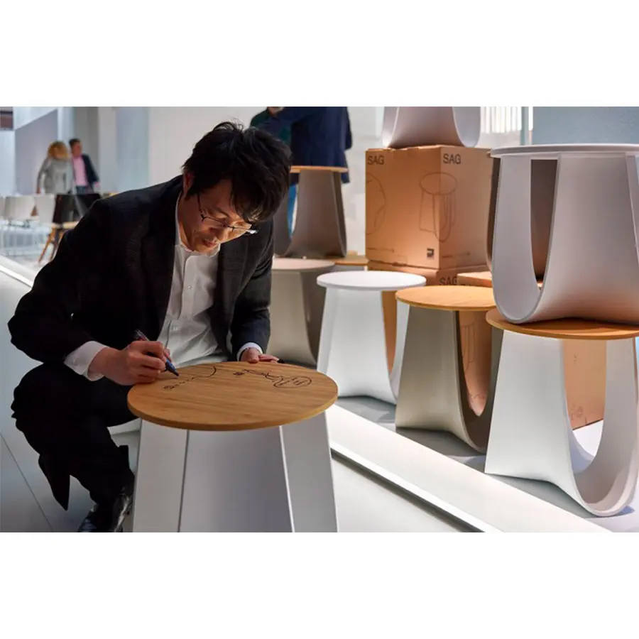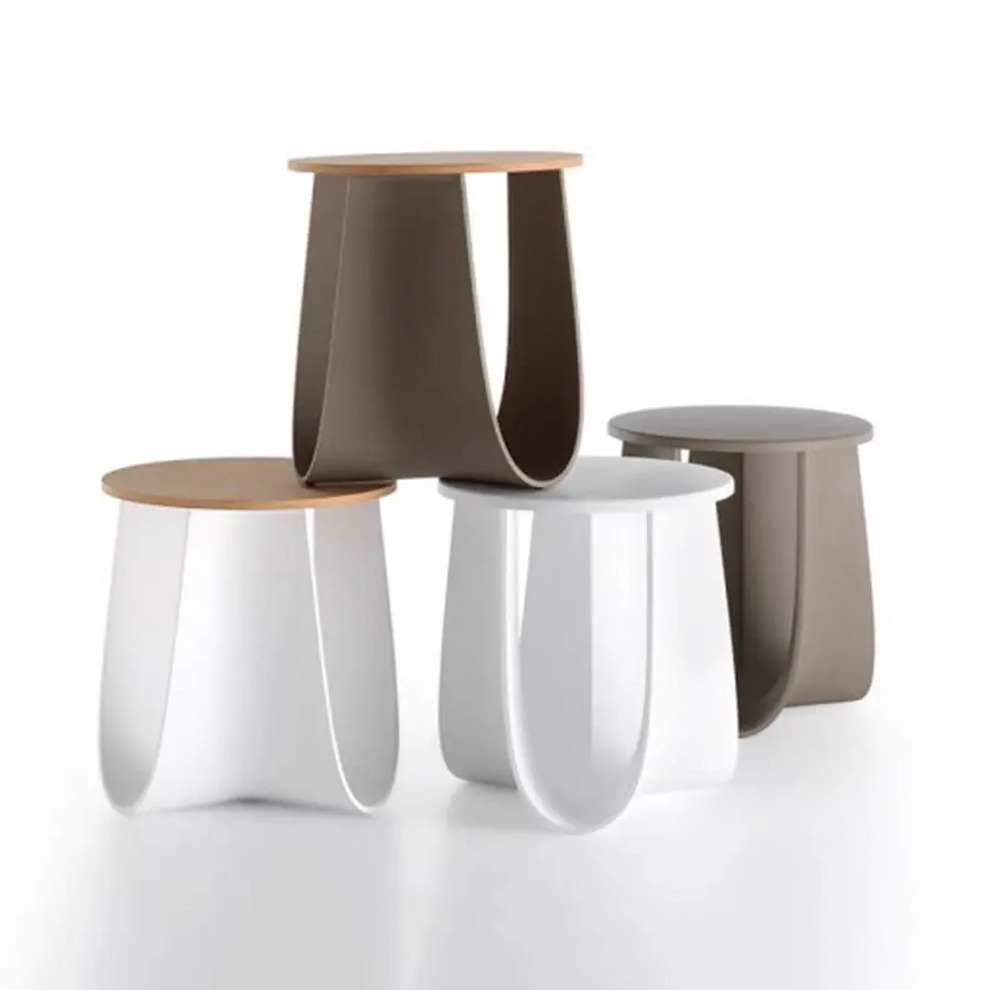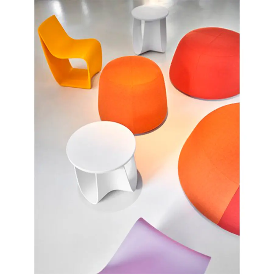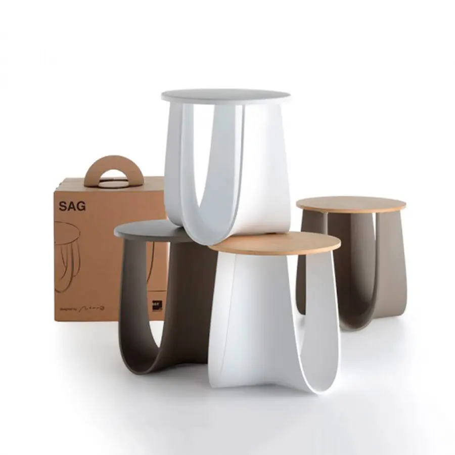 Taburete o mesa, al aire libre o bajo techo: Sag representa un complemento poliédrico y funcional. Las patas de las heces generalmente están diseñadas con elementos de «columna». Por el contrario, Sag ha sido diseñado como una pieza entera doblada sobre sí misma, como una tela suspendida en el aire y fundida en tres direcciones en una sola forma. Su estructura de arco cóncavo, así generada, le da a Sag su imagen suave y elástica especial, pero también una robustez increíble, capaz de distribuir fuerzas y absorber cargas.Estructura en poliuretano rígido, obtenida por moldeo, disponible en blanco mate y barro mate.