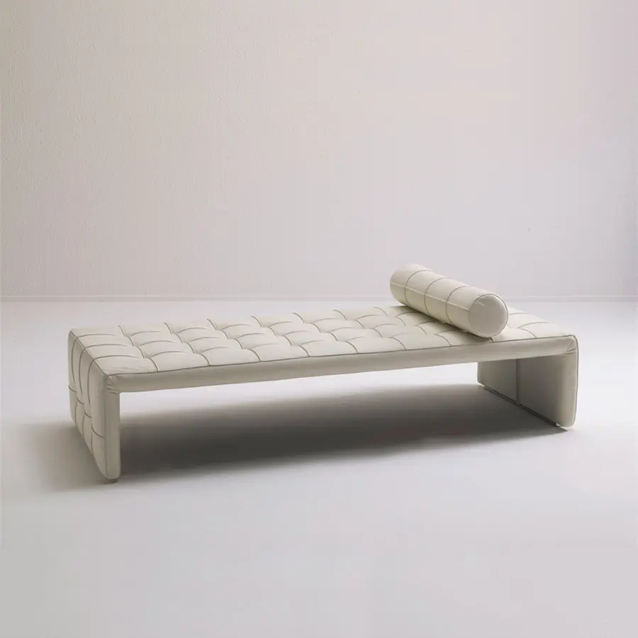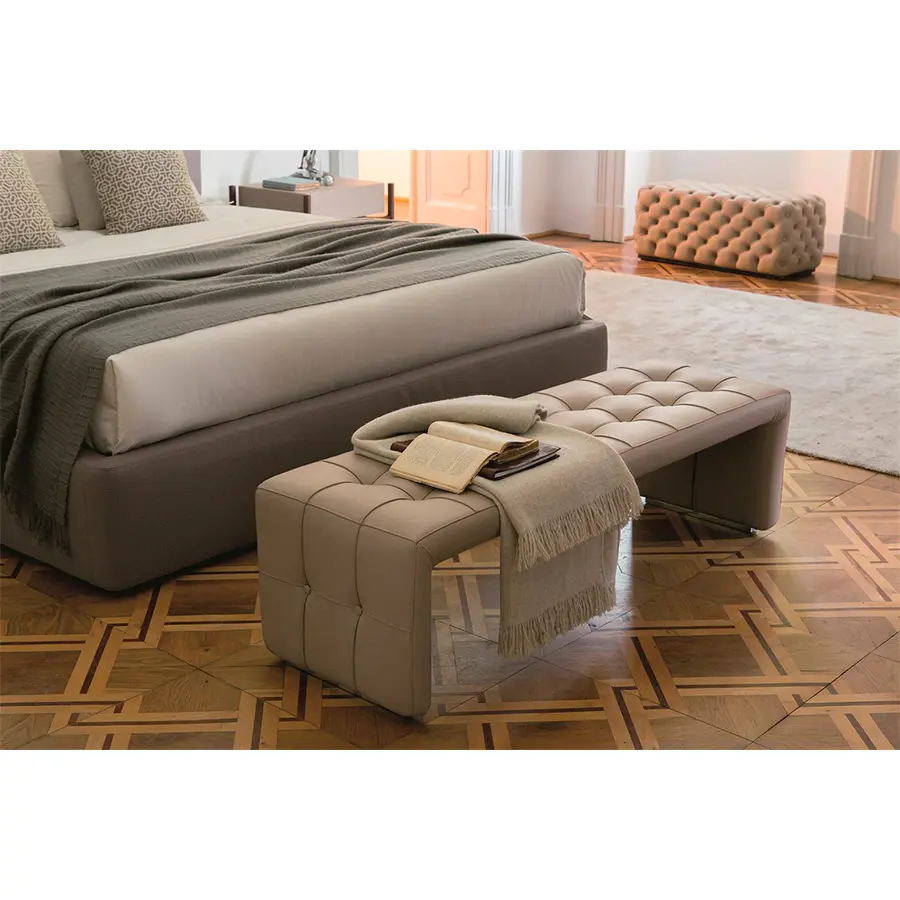 Banqueta enteramente revestida en las telas de la colección. Disponible en dos medidas. 140x45x42H – 180x72x42H