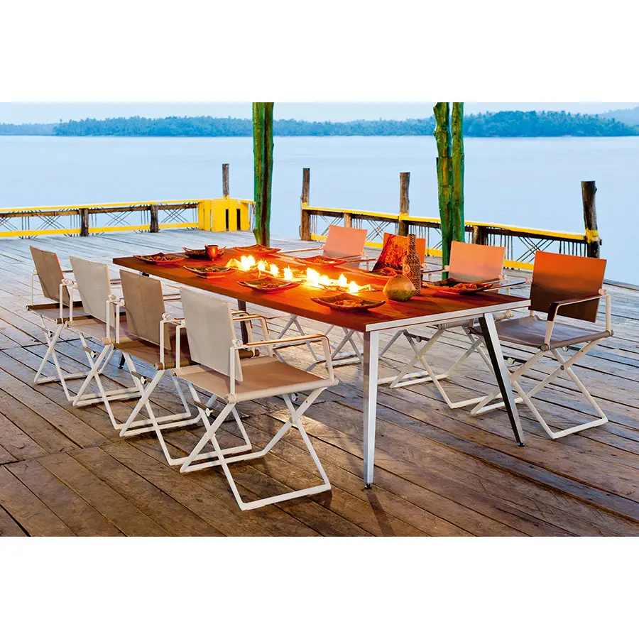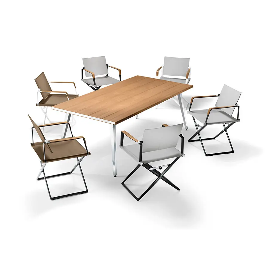 Inspirada en las distinguidas embarcaciones de la America´s Cup, SeaX es símbolo de elegancia y modernidad. De la grácil sofisticación de las sillas plegables a la discreta innovación de las mesas comedor, esta colección refleja a la perfección la atención meticulosa al detalle y los materiales, texturas y colores cuidadosamente concebidos de su diseñador Jean-Marie Massaud.