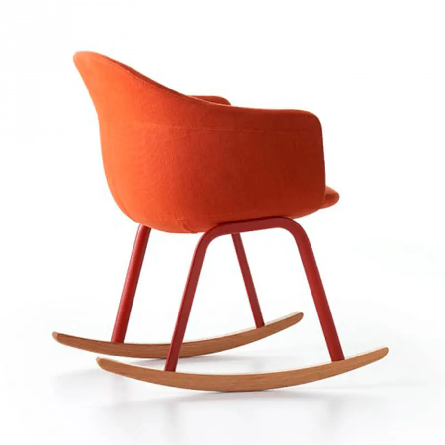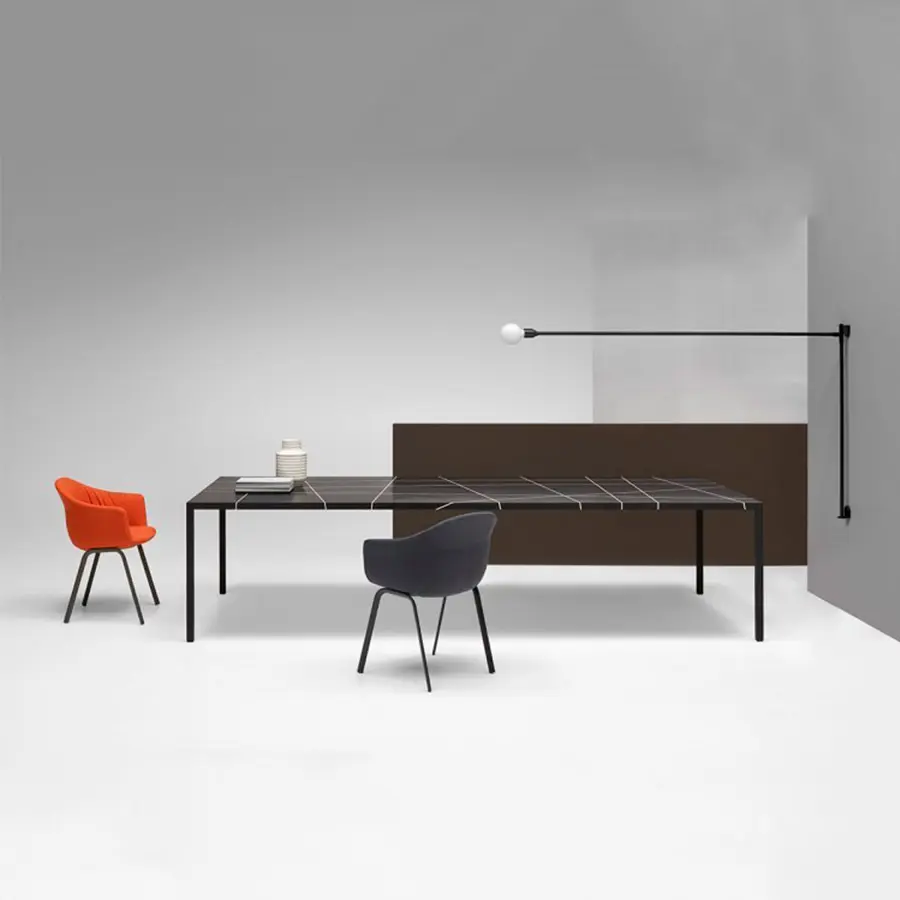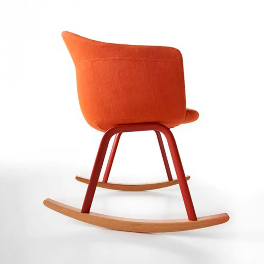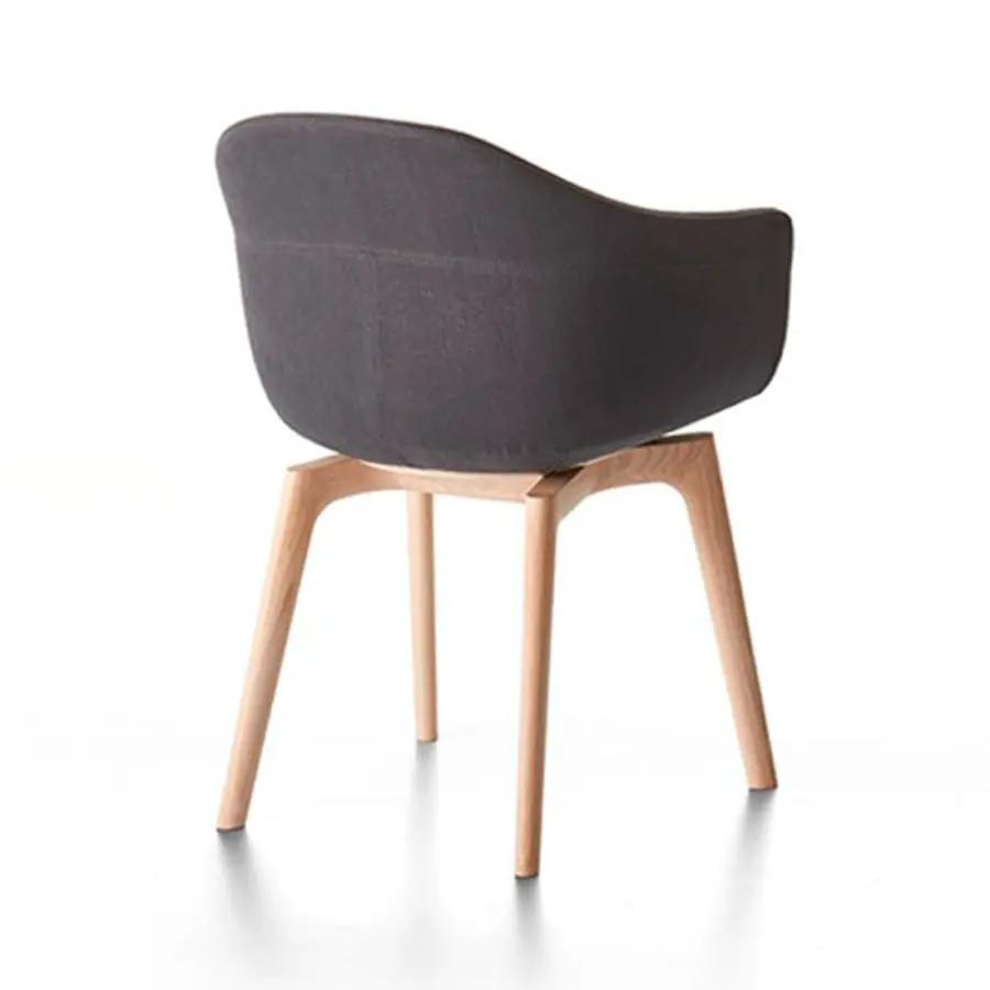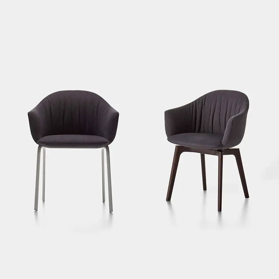 La doble costura en el respaldo resalta la forma y la tensión; las juntas de peine conectan las patas a las bases de madera, mejorando el cuidado y la experiencia manual del trabajo con madera maciza; Un tubo de acero elíptico inclinado a 45 °, sinónimo de experiencia técnica y producción avanzada.