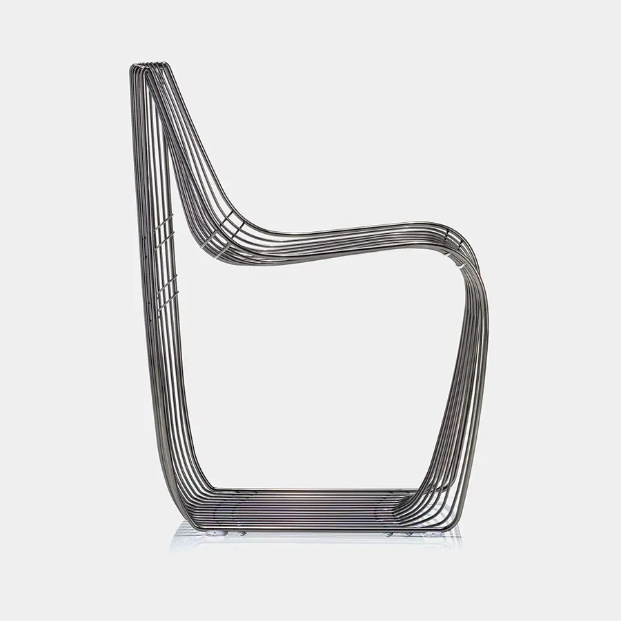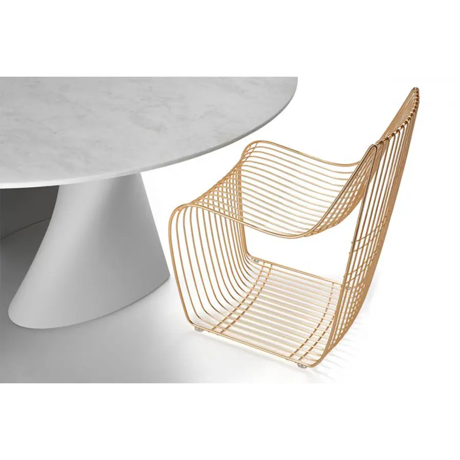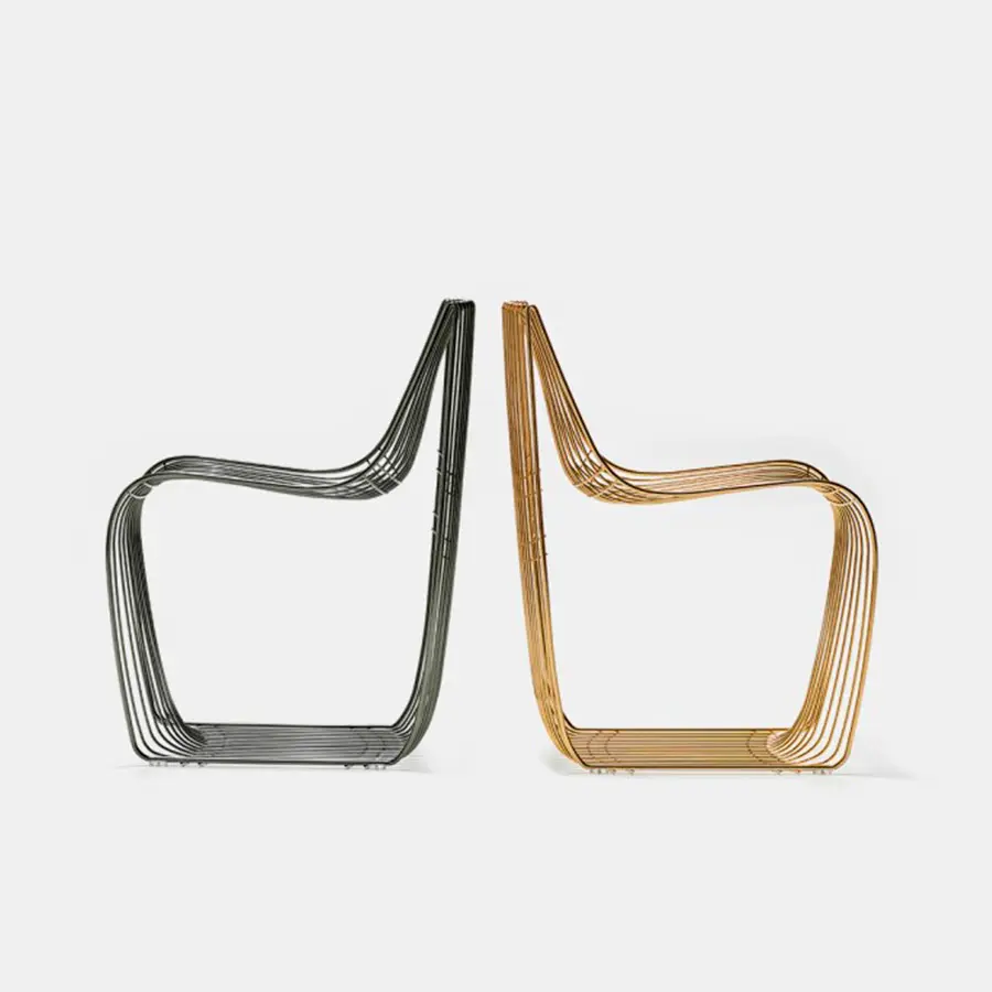 La silla Sign celebra su aniversario creando un nuevo producto con gran impacto y personalidad. El nuevo Sign Filo es una combinación perfecta de diseño y artesanía y está construido como una joya refinada. De hecho, el proceso creativo de esta silla recuerda la técnica de filigrana del antiguo orfebre que se lleva a cabo entrelazando y soldando alambres finos de metales preciosos.