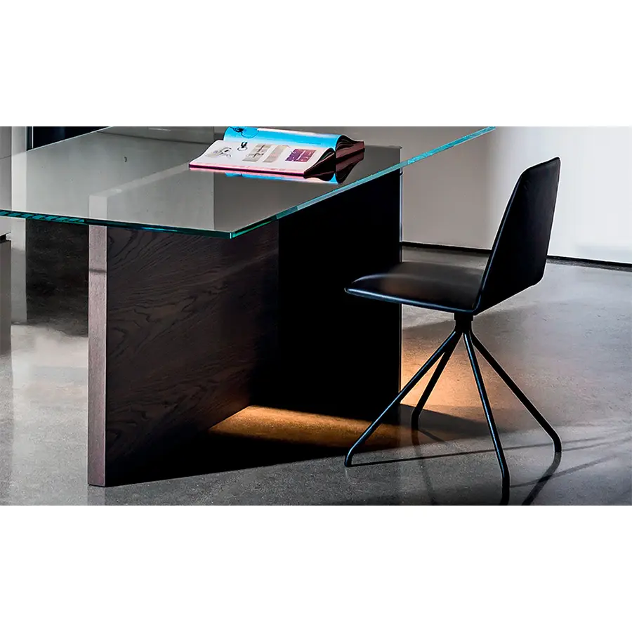 Silla con base de metal en relieve, varios acabados. Disponible con cuerpo en roble natural, teñido