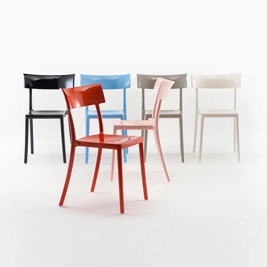 Inspirada en el mundo de la alta costura y de las pasarelas, la silla Catwalk está dirigida tanto al mundo del hogar como al sector contract y es apta para el uso en interiores y exteriores.